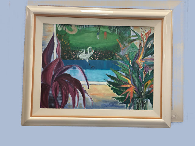 N-Original Art c.1970 Window On Golf Course