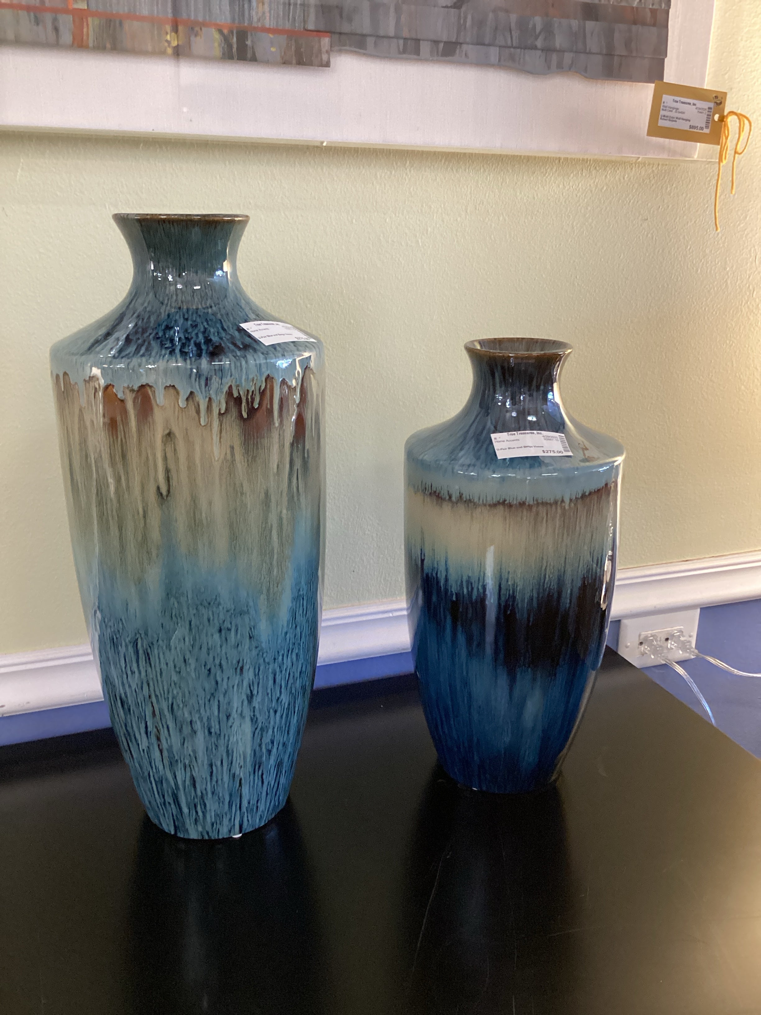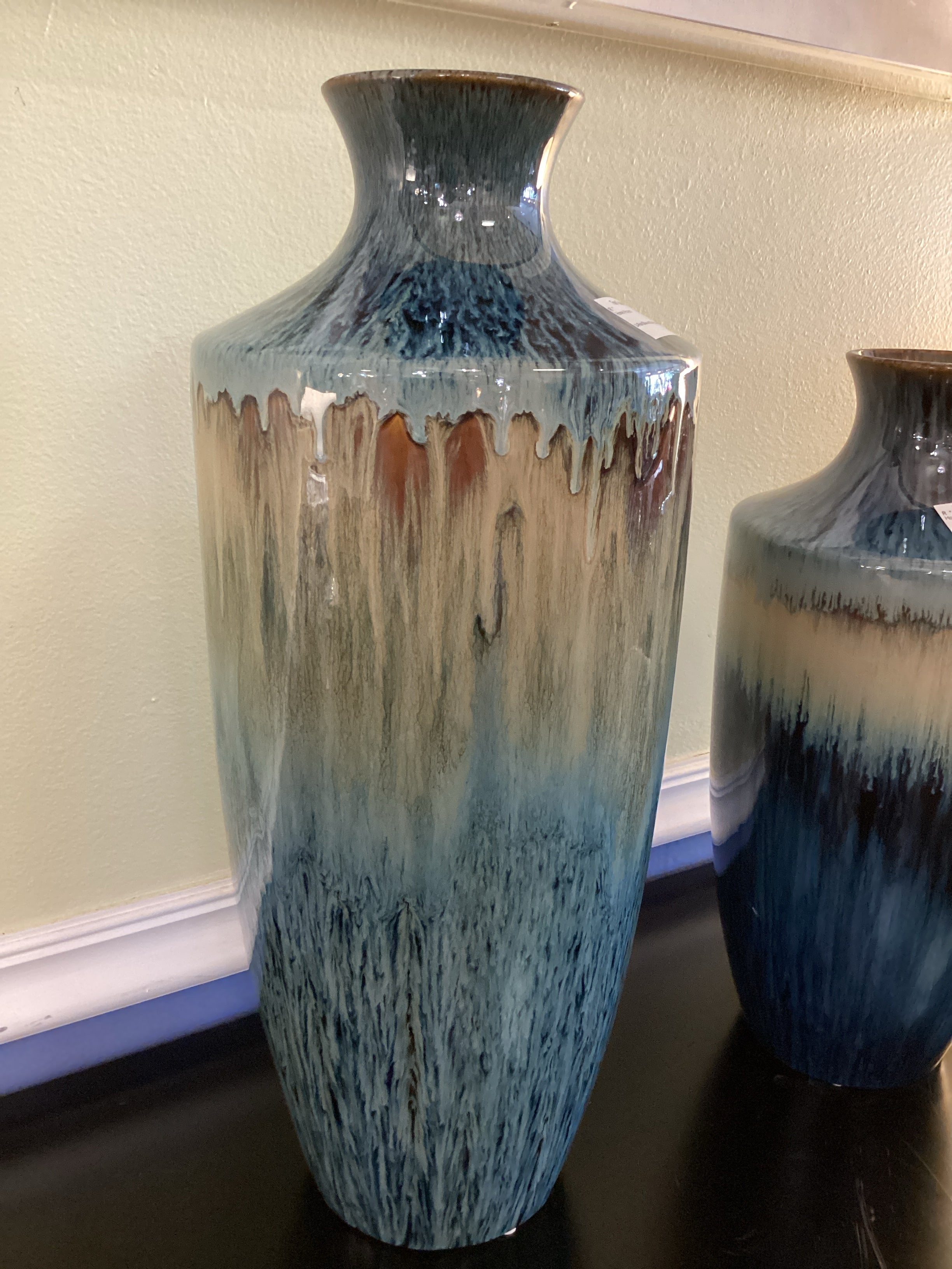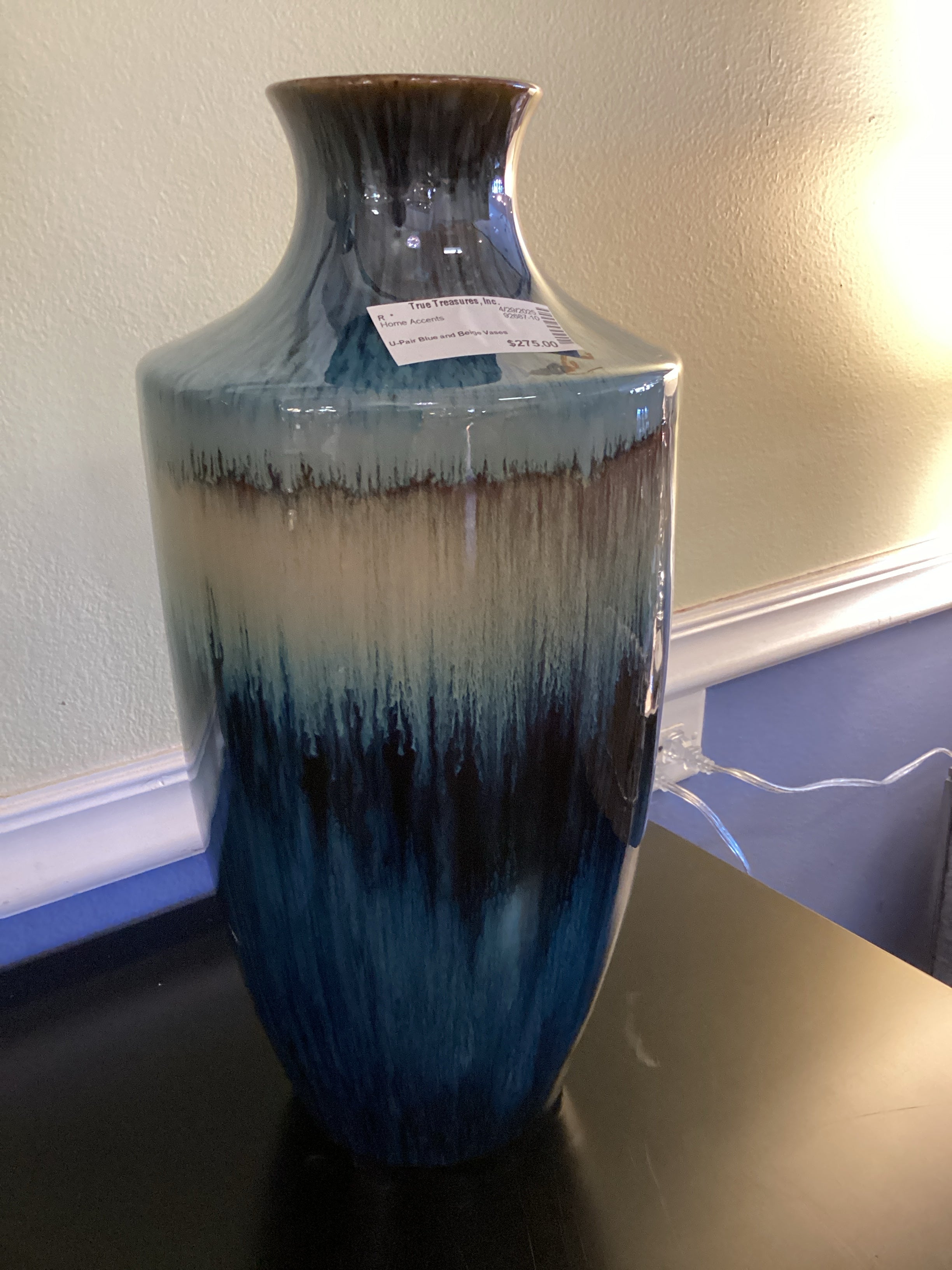 Pair Blue and Beige Vases