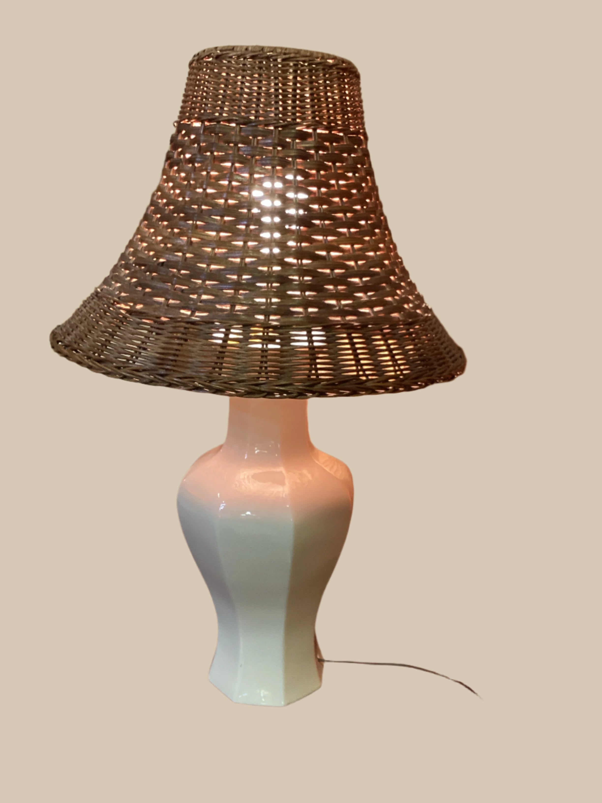 Pair Cream Lamps with Wicker Shades