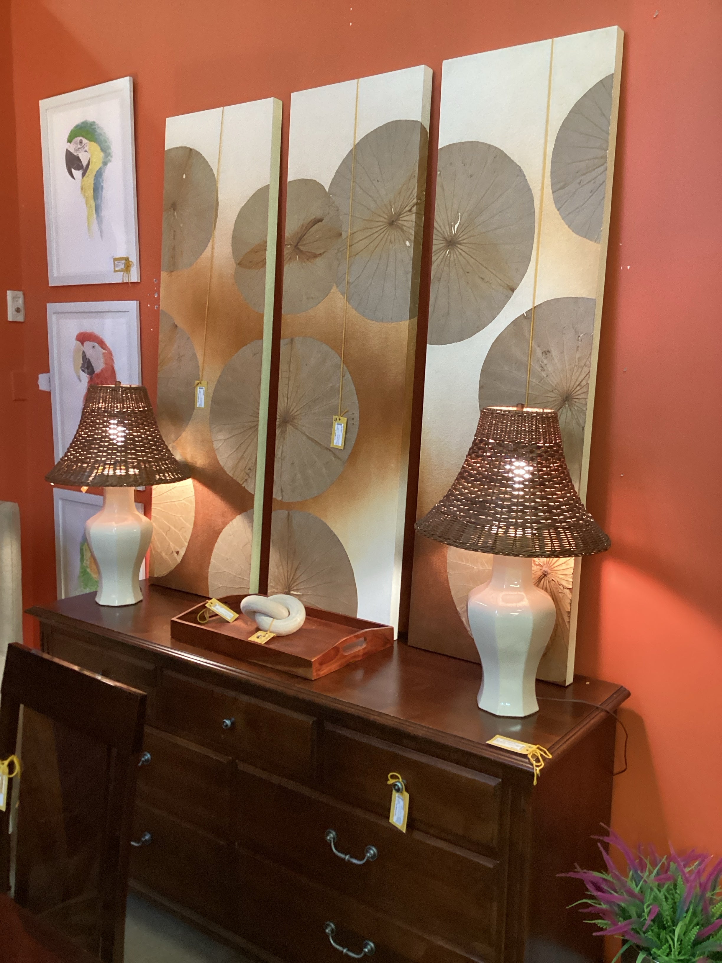 U-Pair Lamps with Wicker Shades