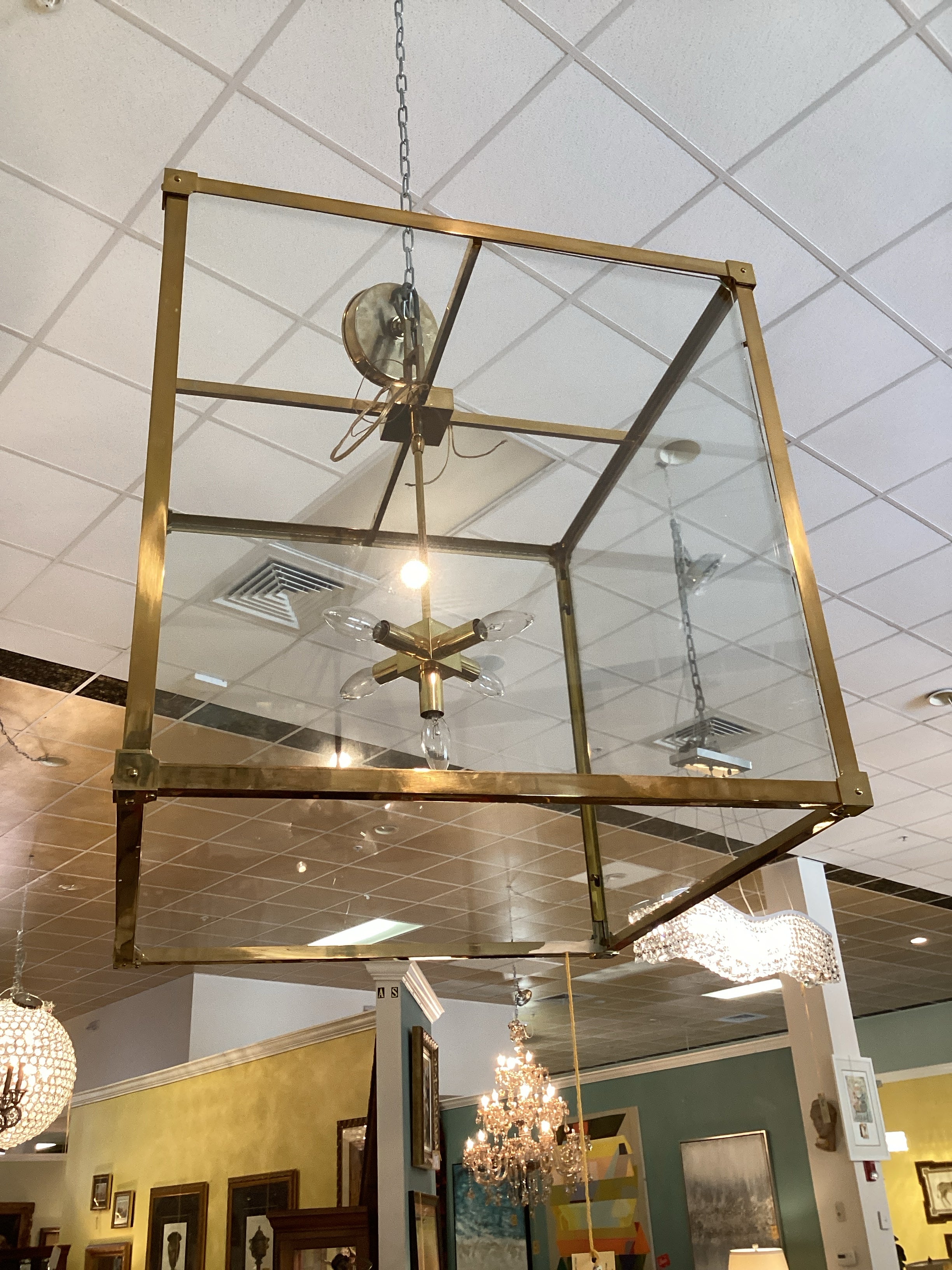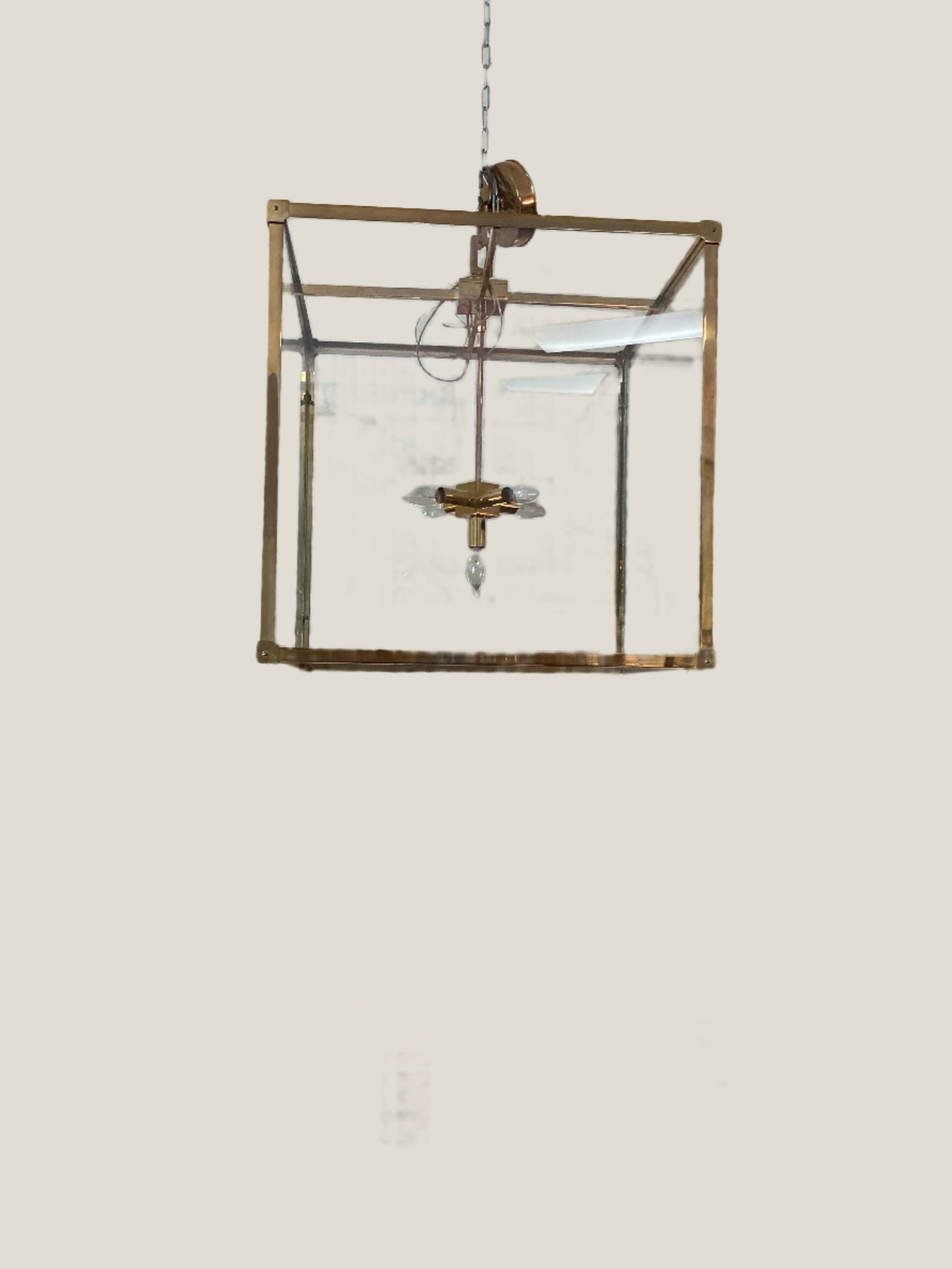 Remains Lighting "Marlowe" Polished Brass and Glass Square Lantern