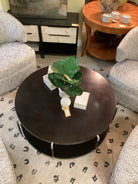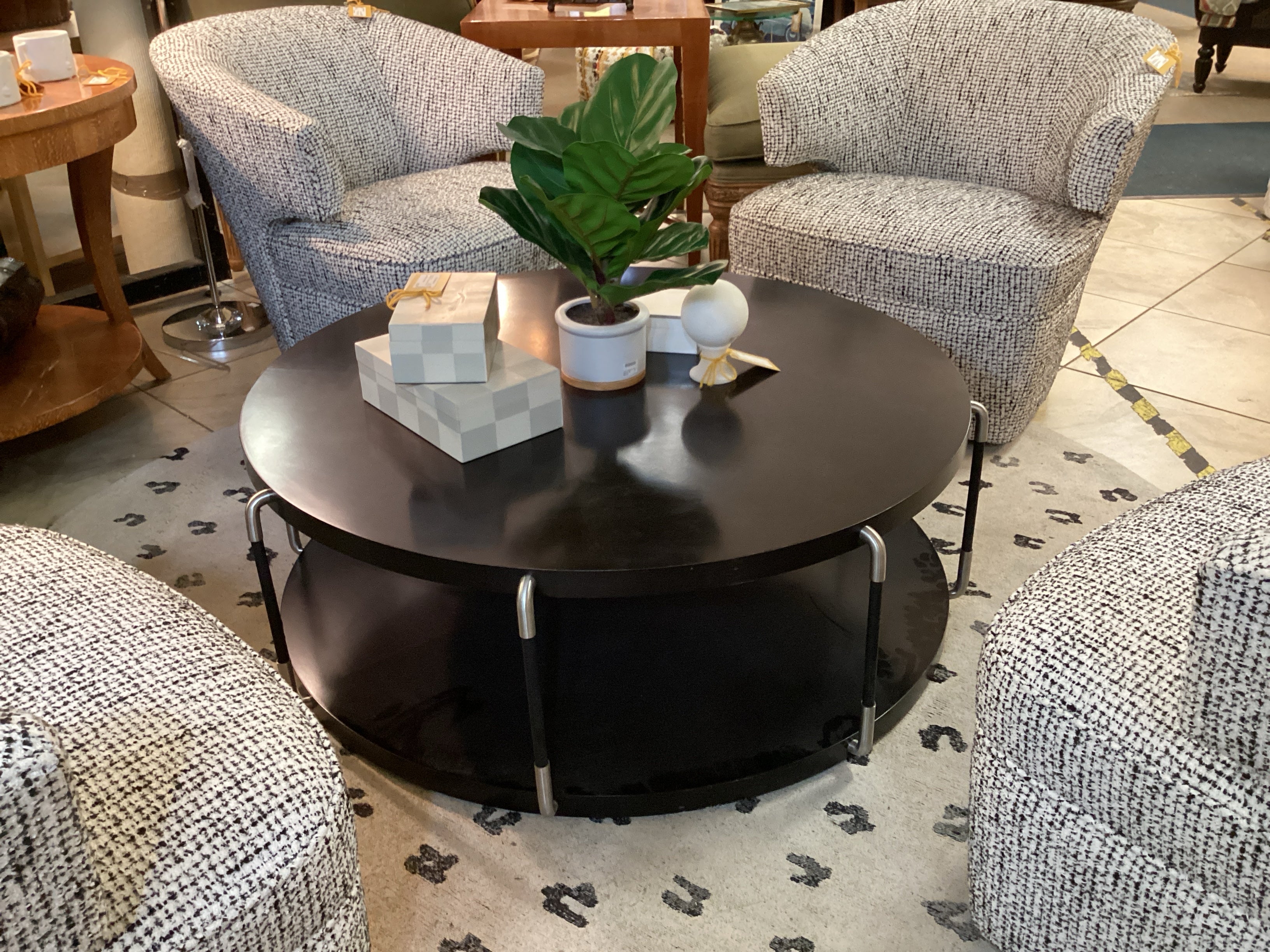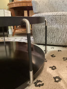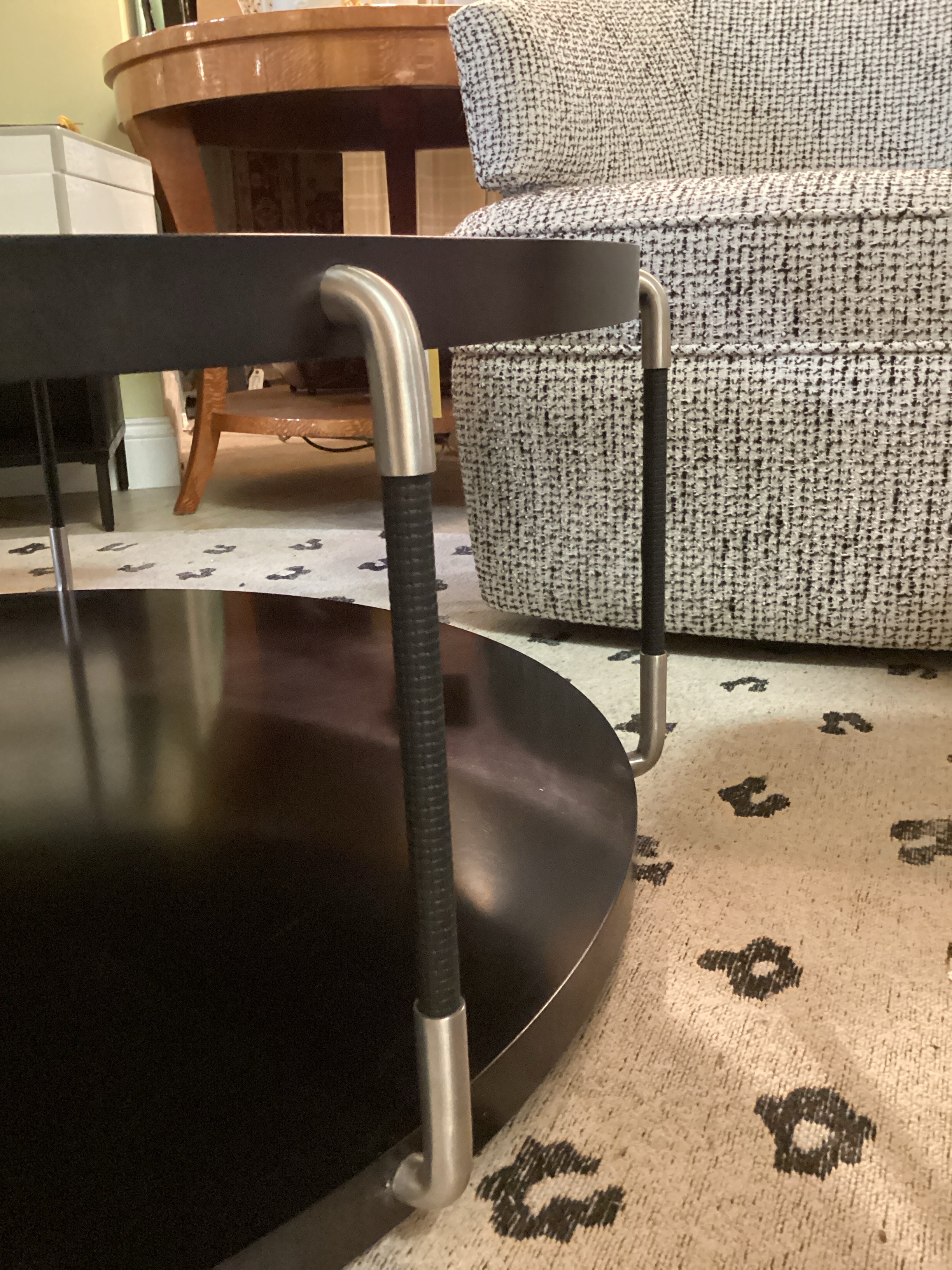 Round Black 2 Tier Coffee Table Metal and Leather Detail