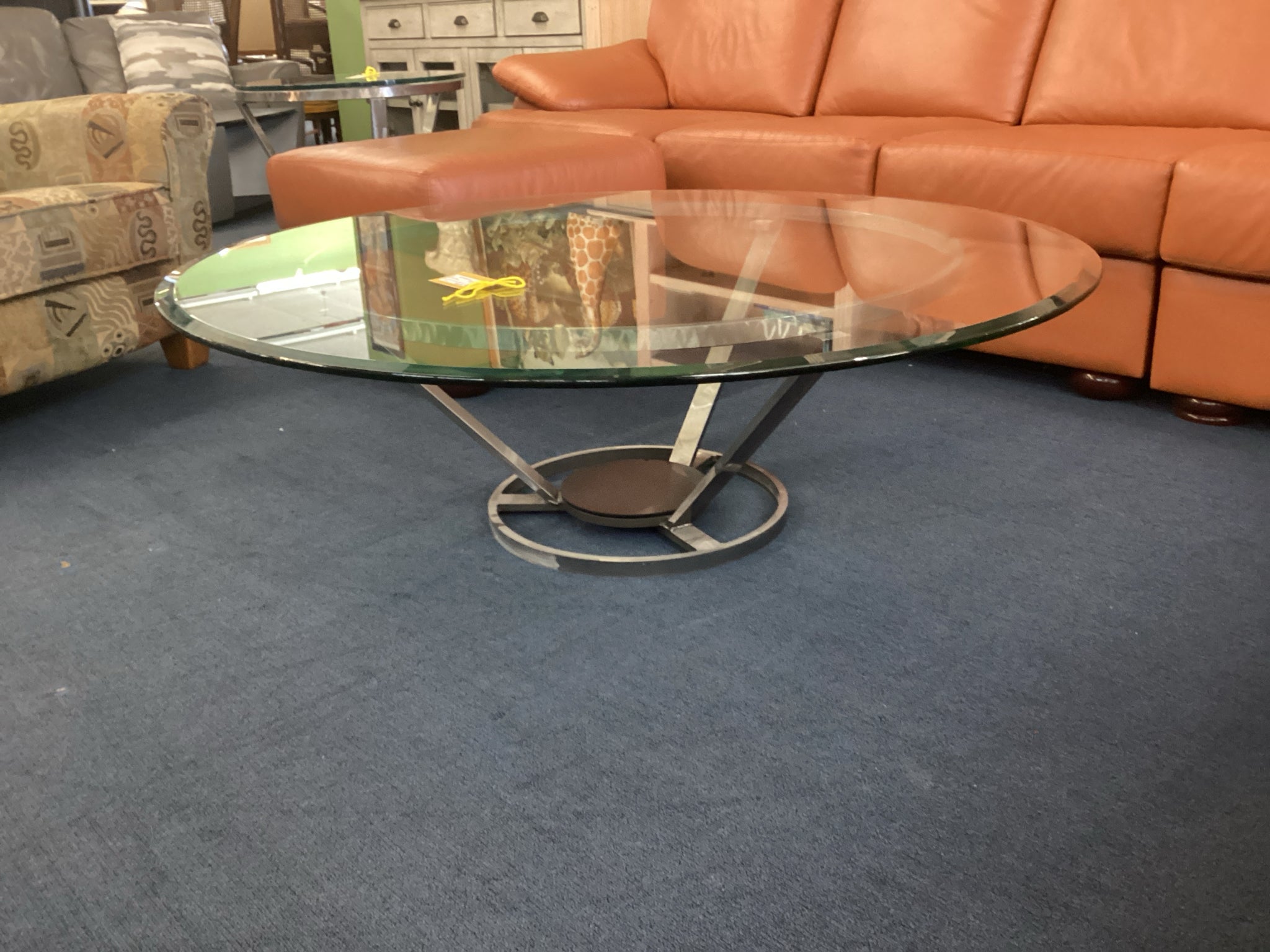 D-Round Silver Mtl Base Glass Top D:48 H:16