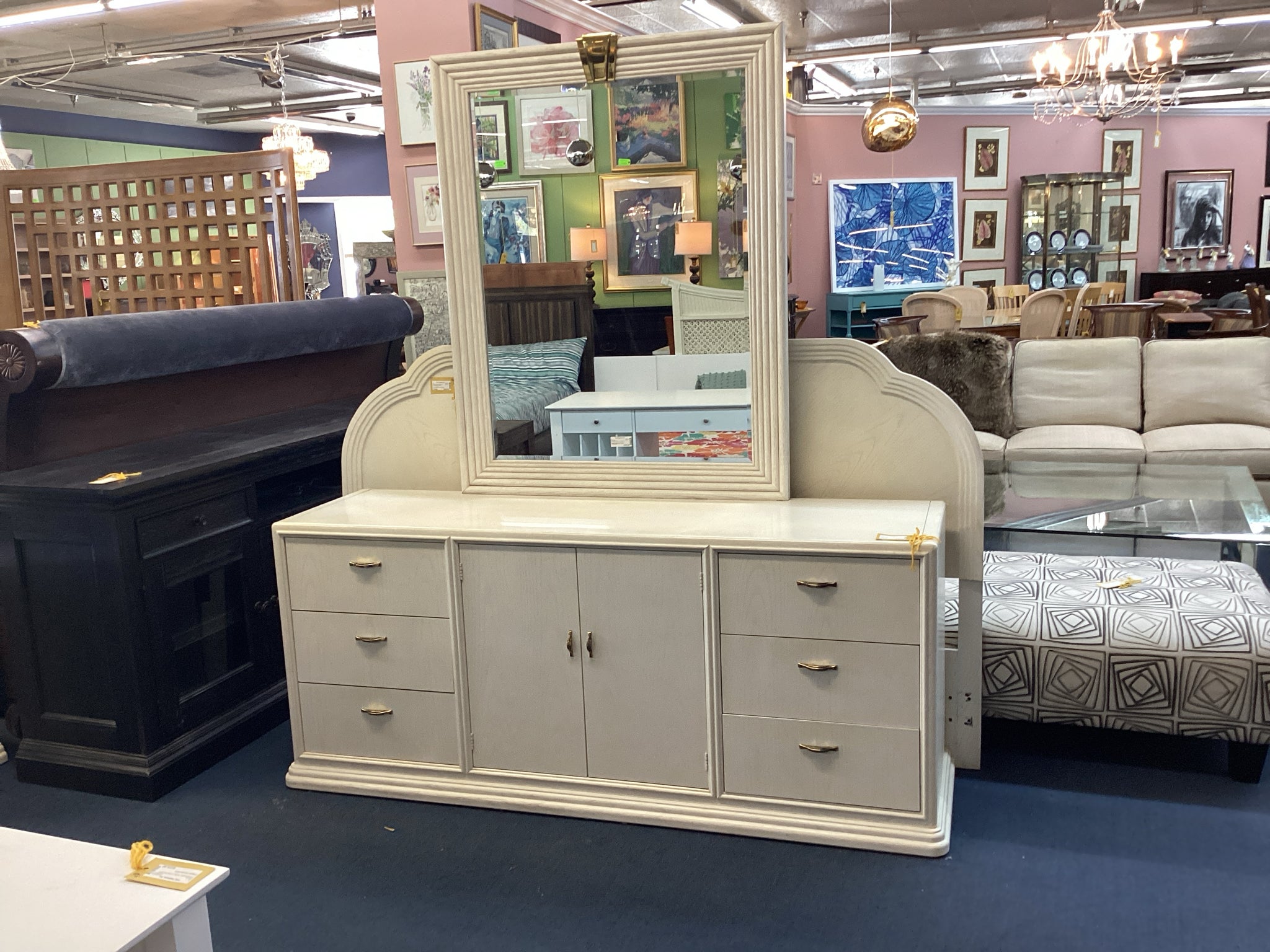 Thomasville White Dresser With Six Drawers Two Doors And Mirror
