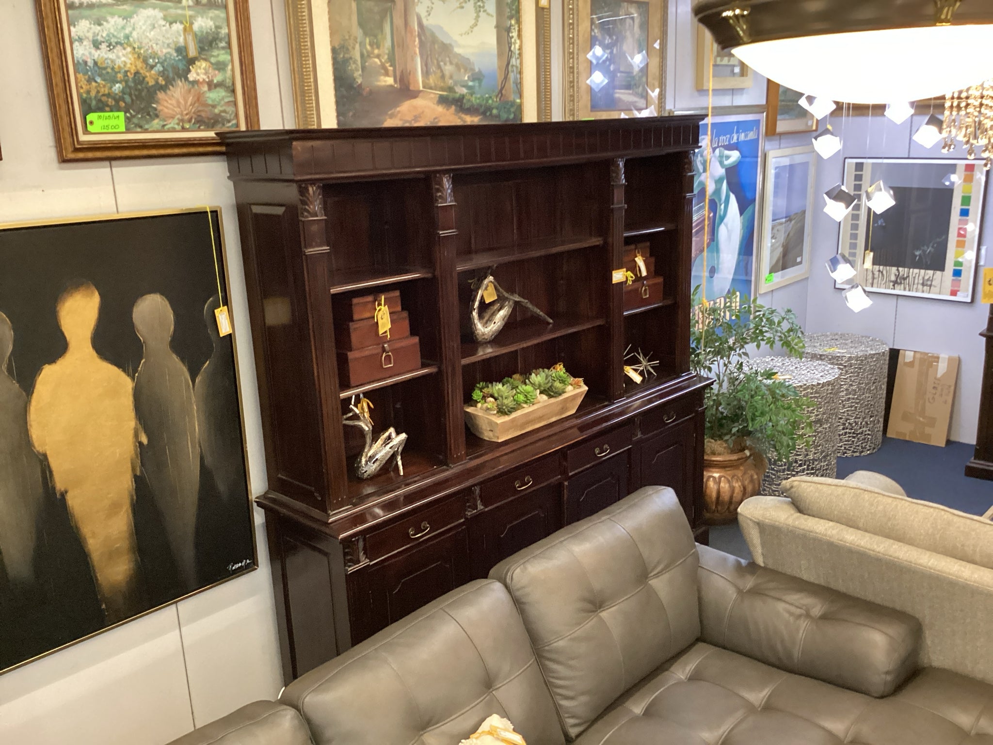 Two Piece Dark Wood Wall Unit With Four Doors And Four Drawers