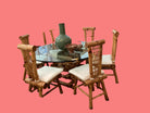 Vintage Budji Layug Style Glass Top Bamboo Table and Six Chairs