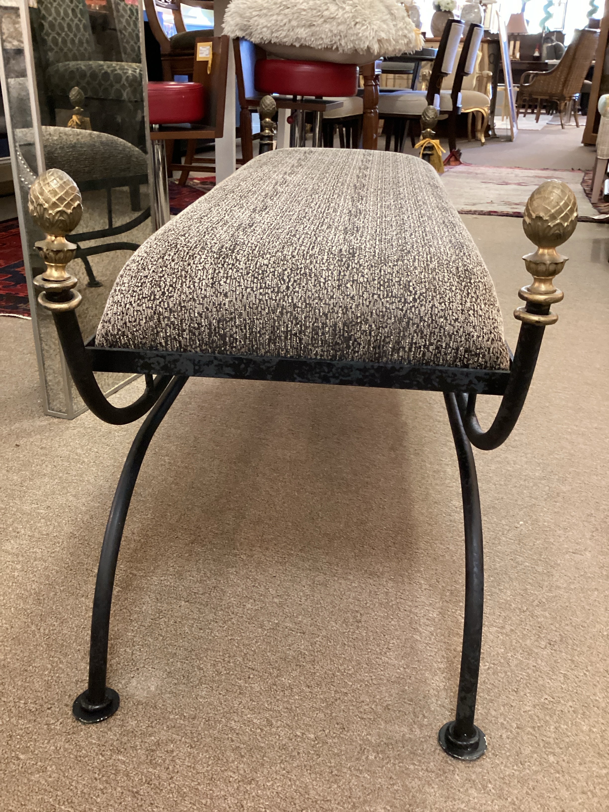 Vintage Iron Framed Bench with Metal Tassel Detail