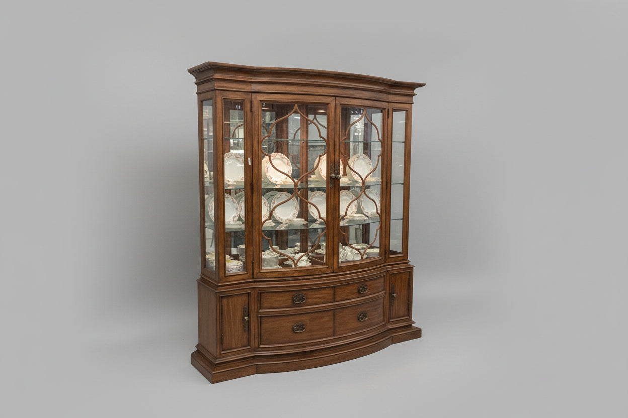 Thomasville Two Piece Medium Wood China Cabinet