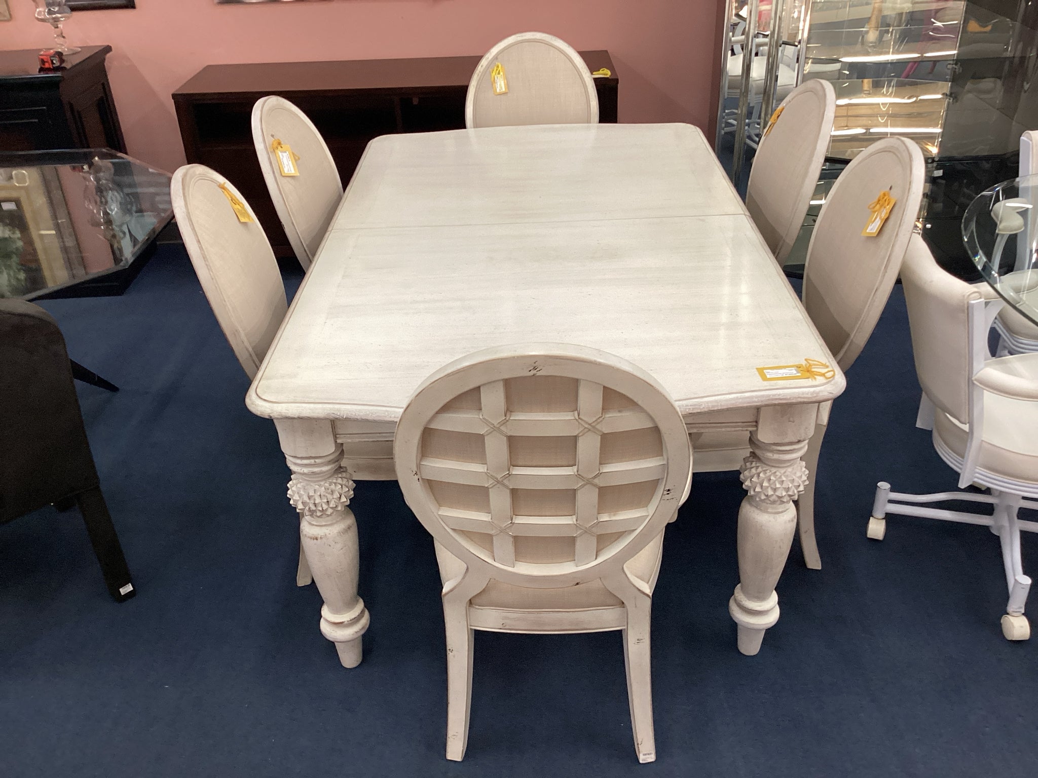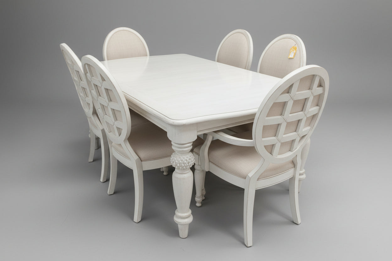 D-Distressed Cream w/6 Chairs 2 Lfs
