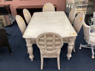 Distressed Cream Table Wih Six Chairs And Two Leafs