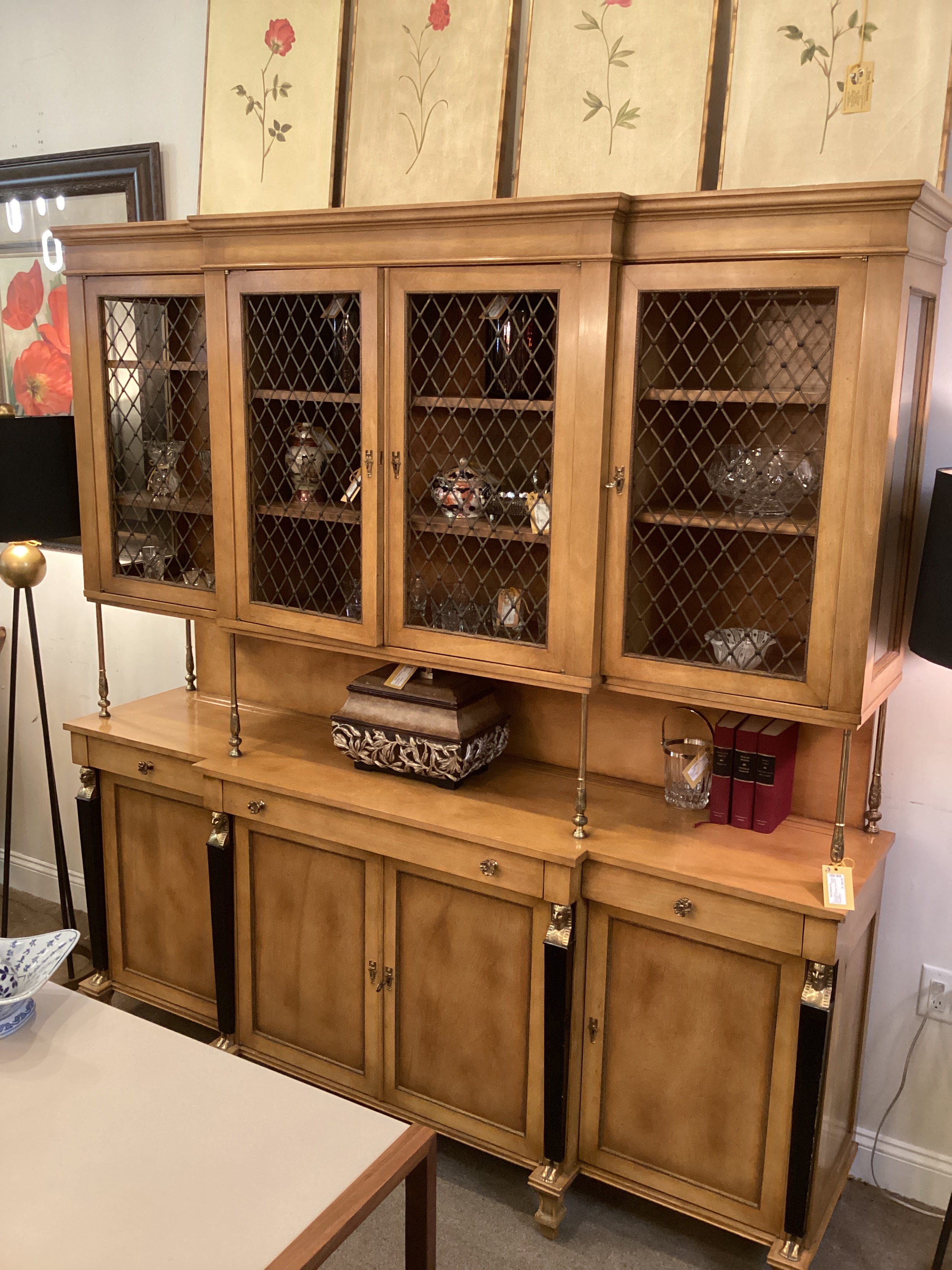 Light Wood 4 Door Iron and Sphinx Detail China Cabinet
