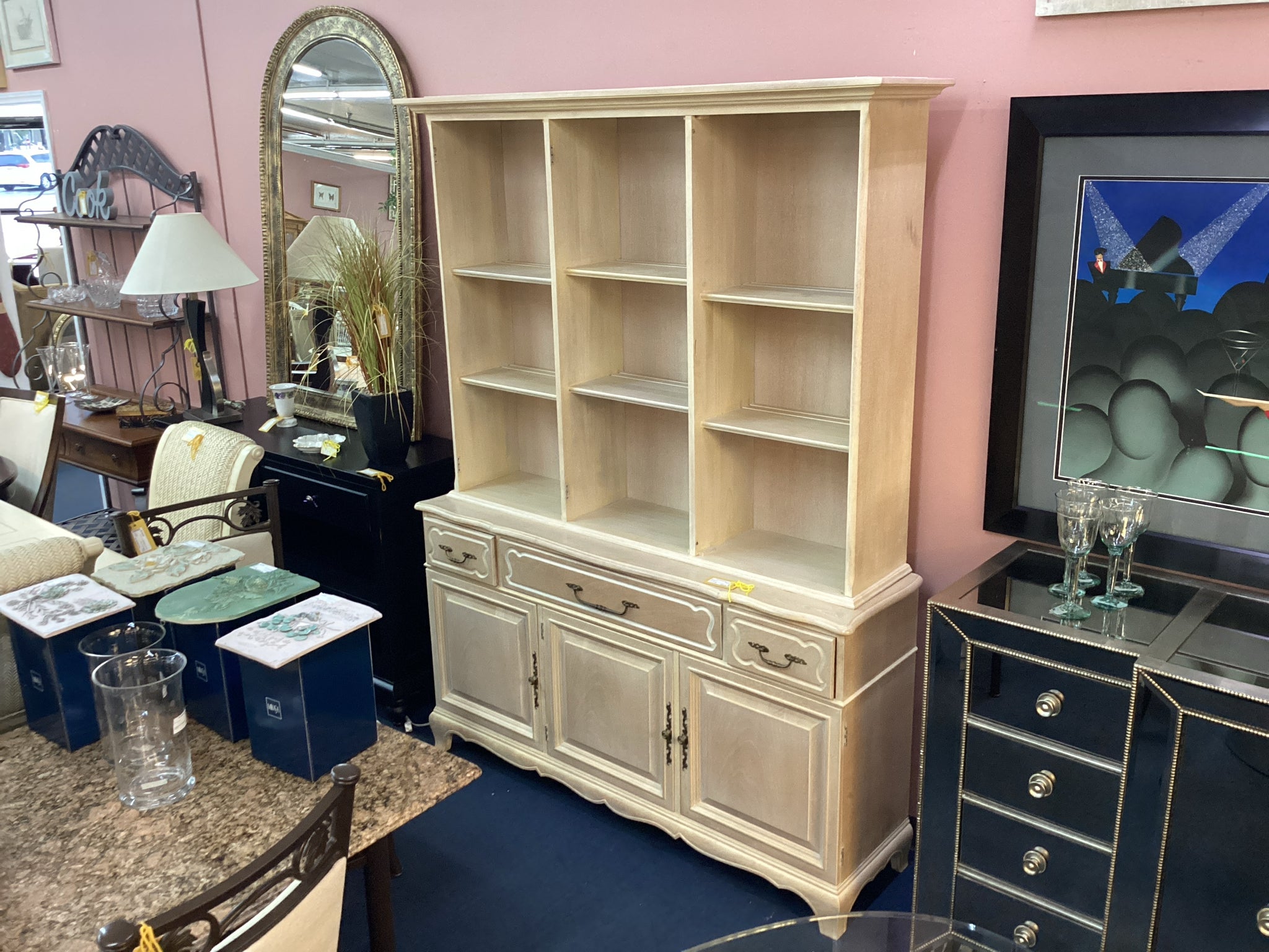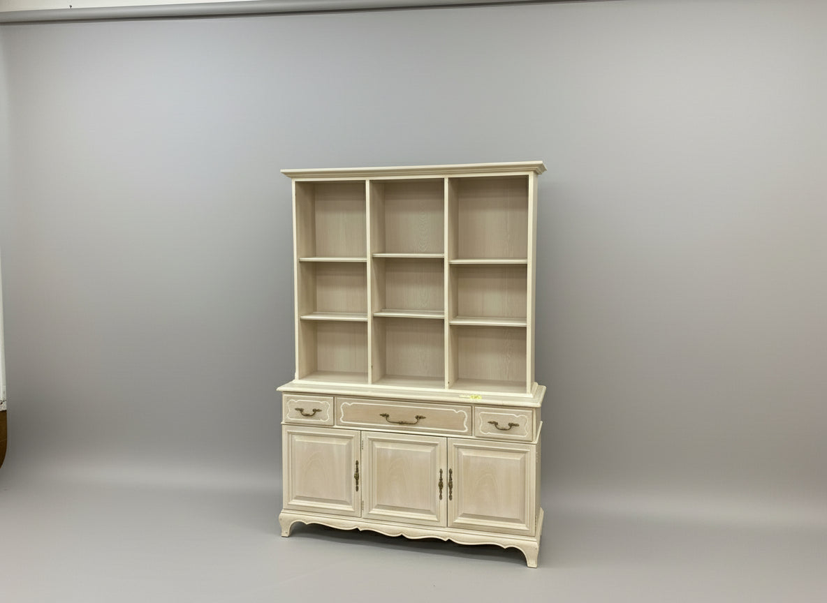 Two Piece Light Wood China Cabinet With Three Drawers And Three Doors