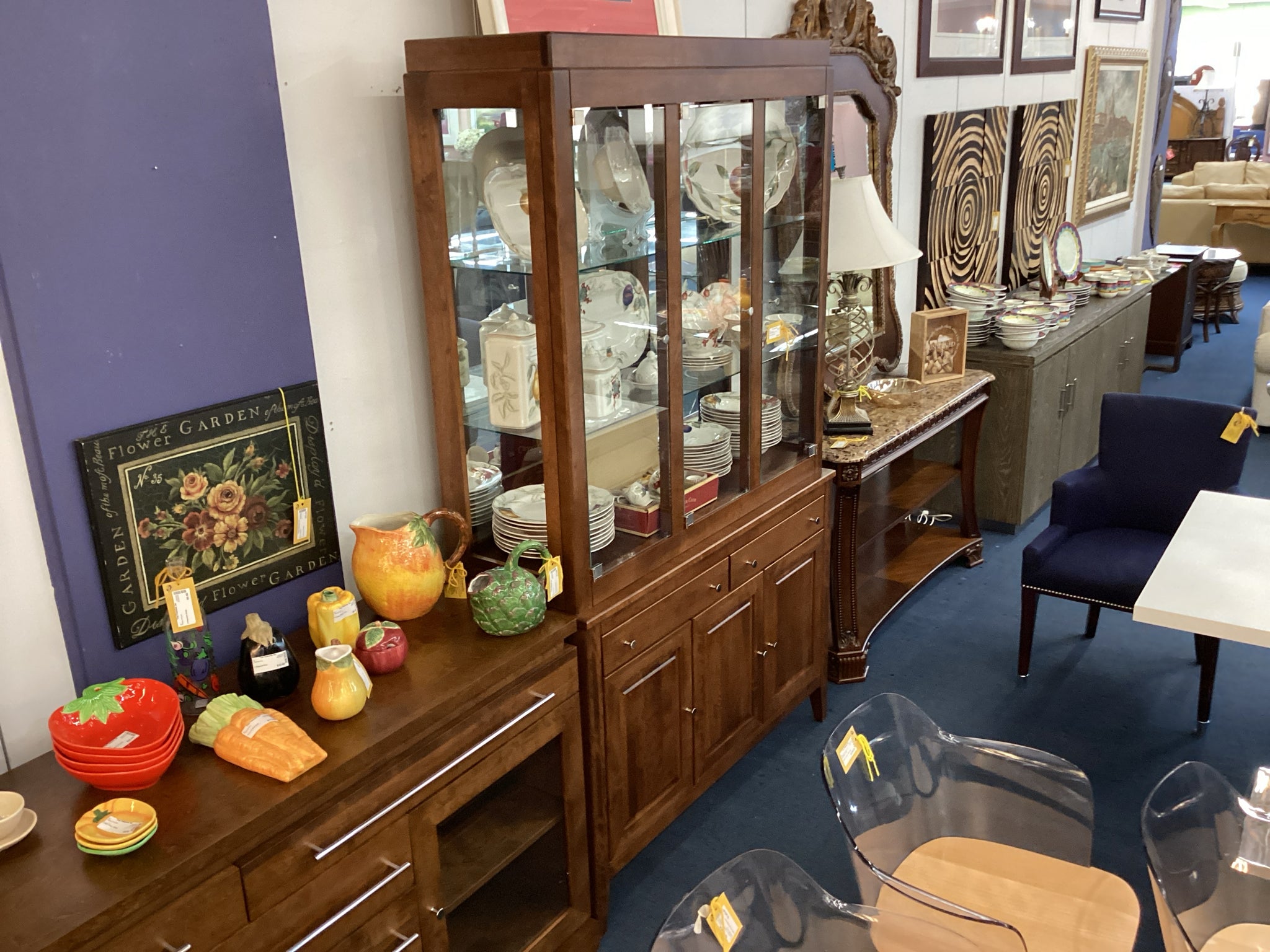 Two Piece Medium Wood China Cabinet