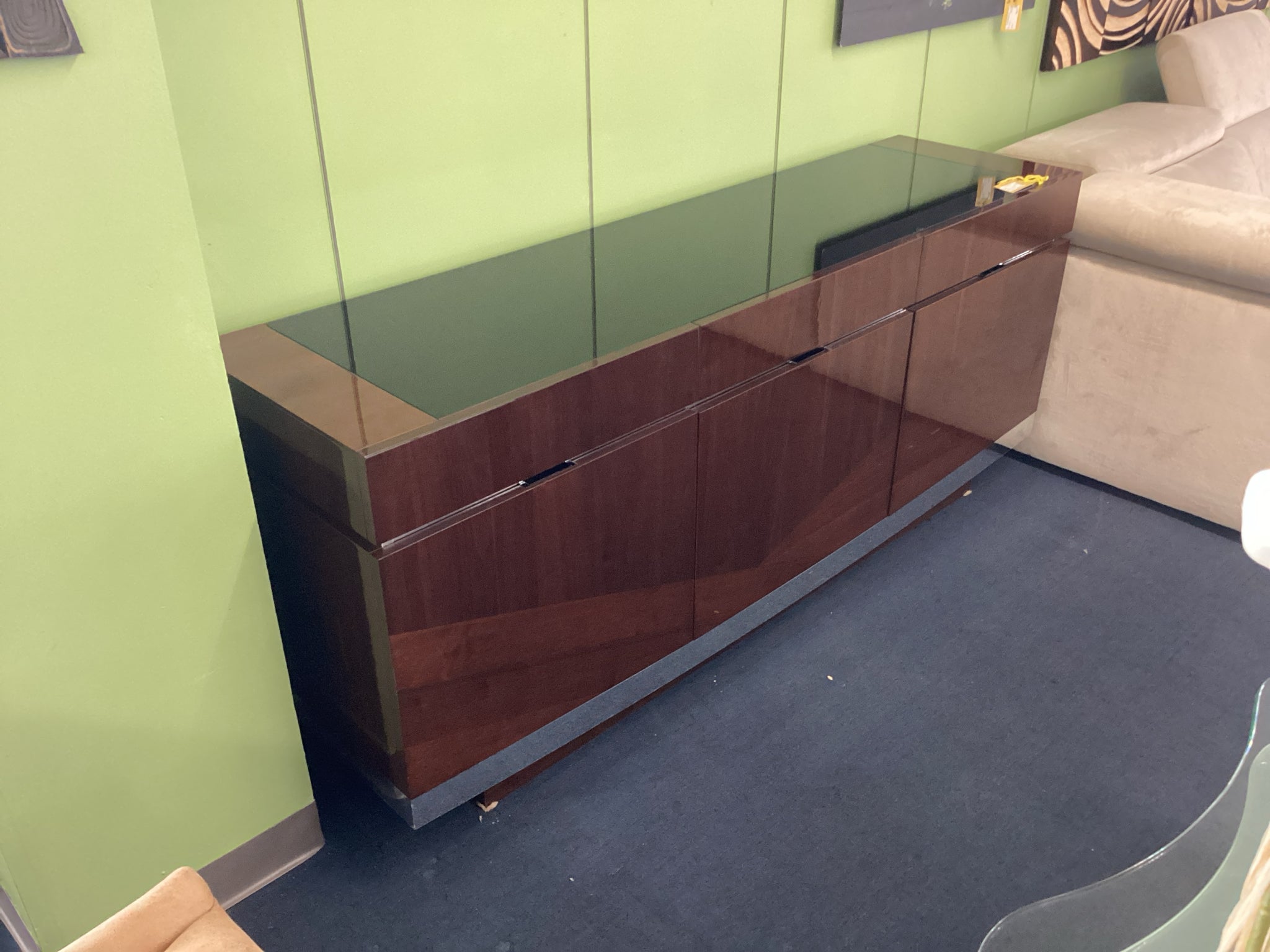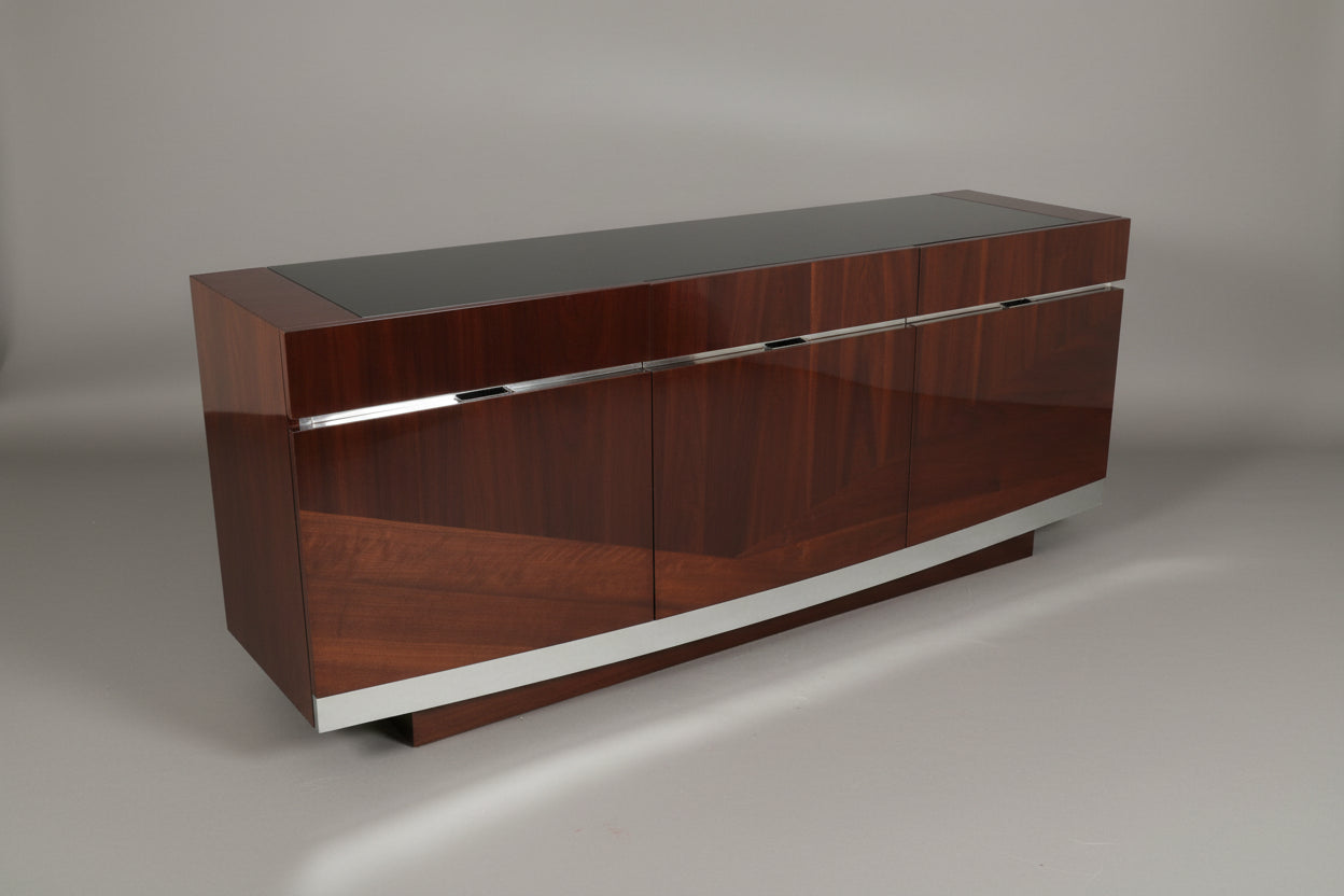 Italian Brown Lacquer Credenza With Three Drawers And Three Doors