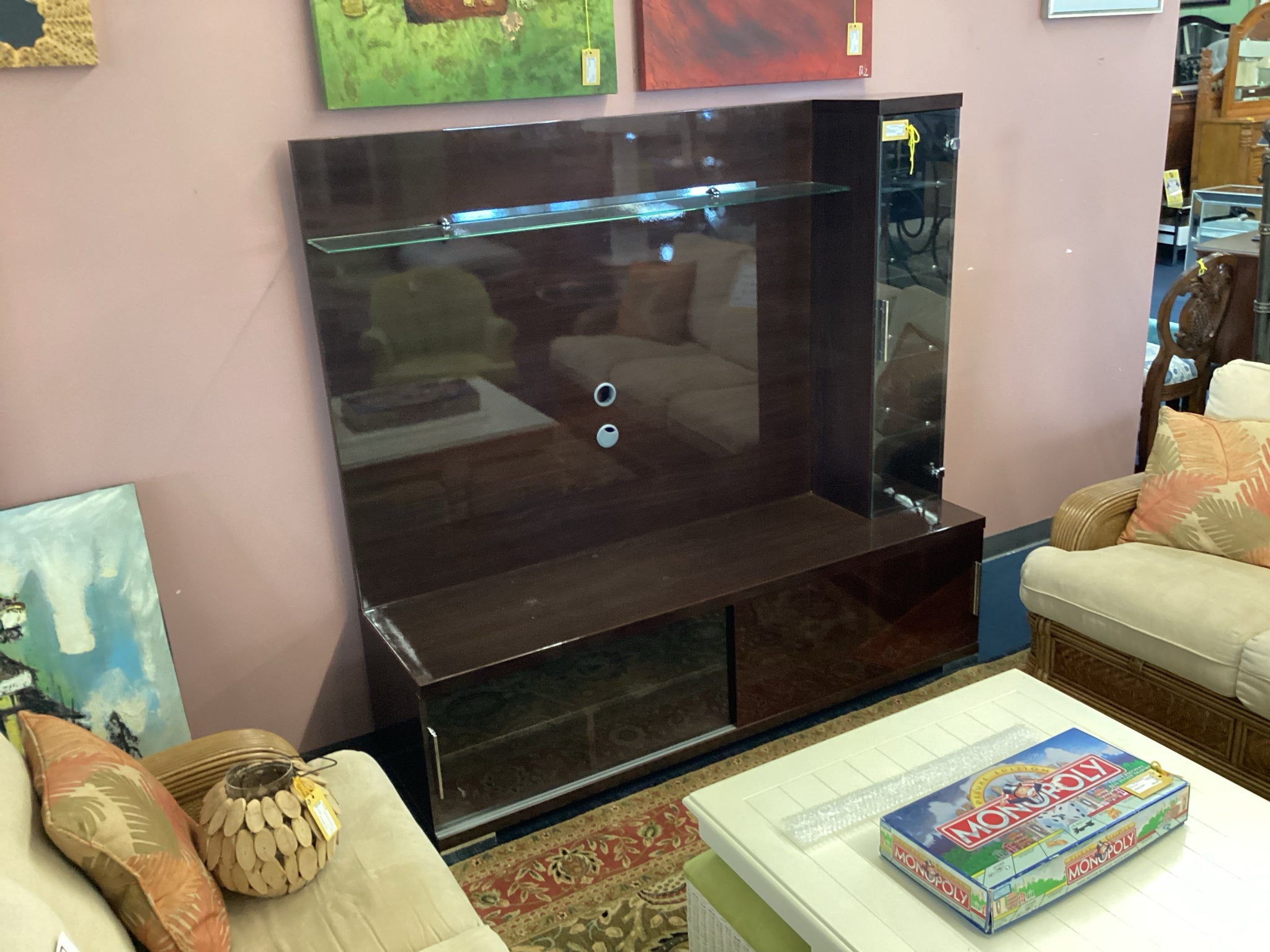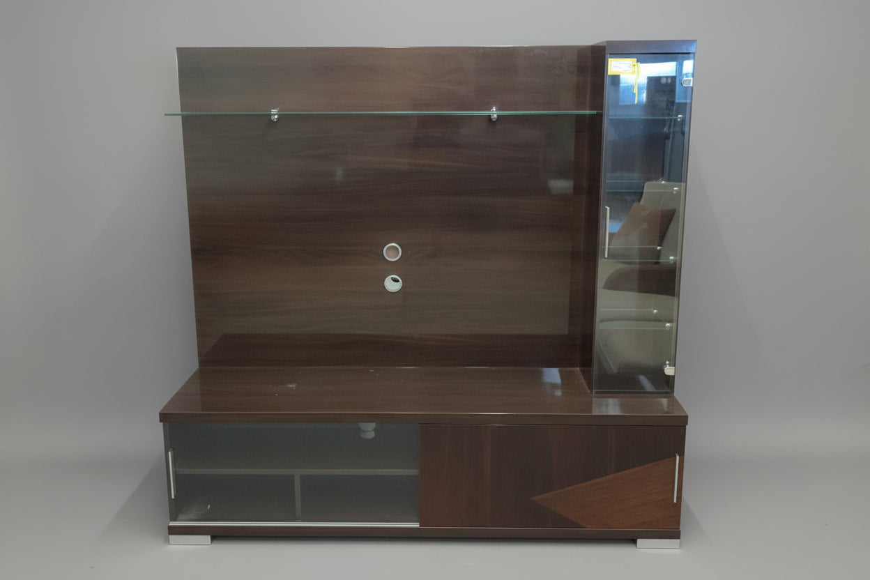 Brown Lacquer And Glass Wall Unit