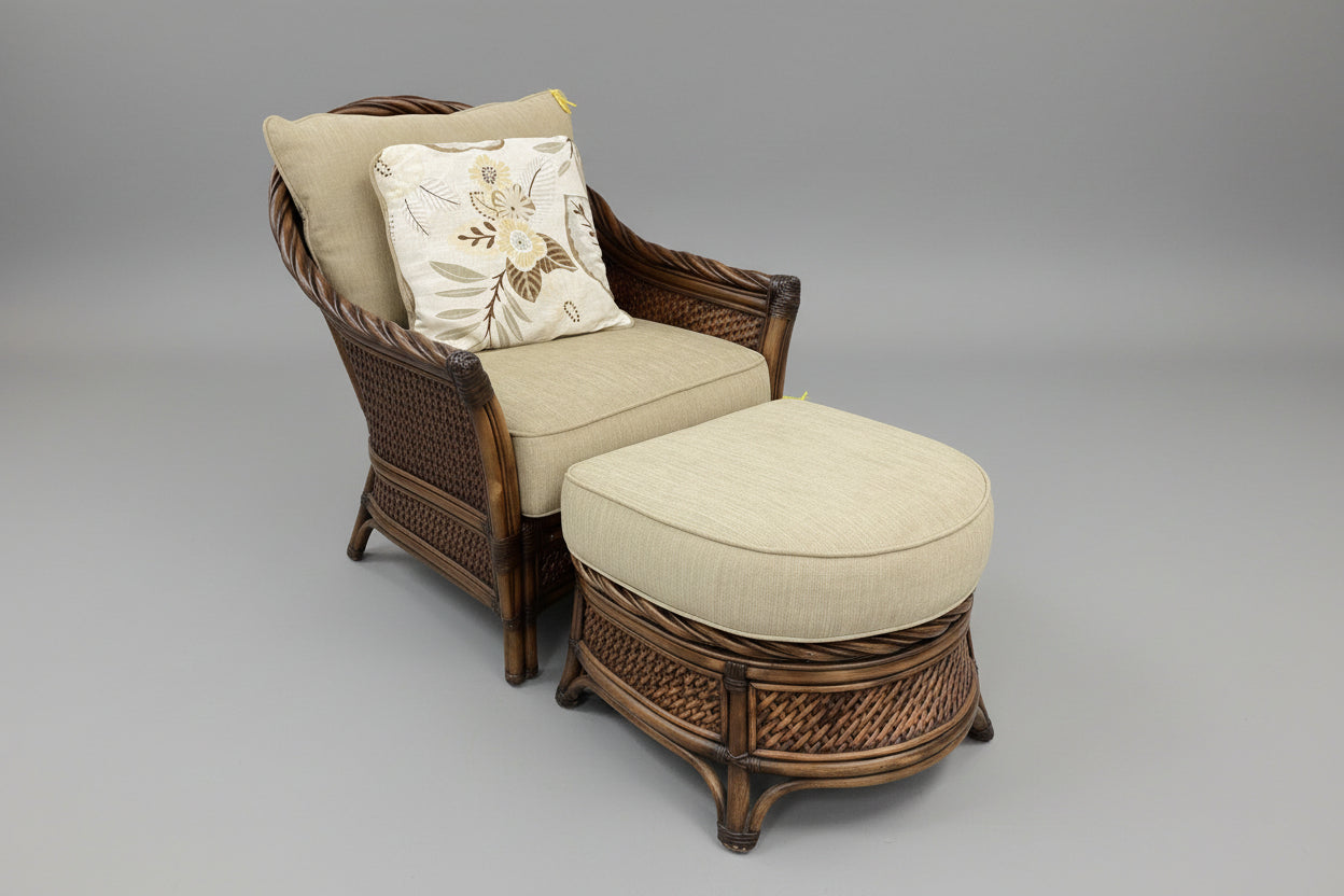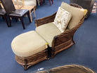 Dark Bamboo And Wicker Living Room Chair With Ottoman