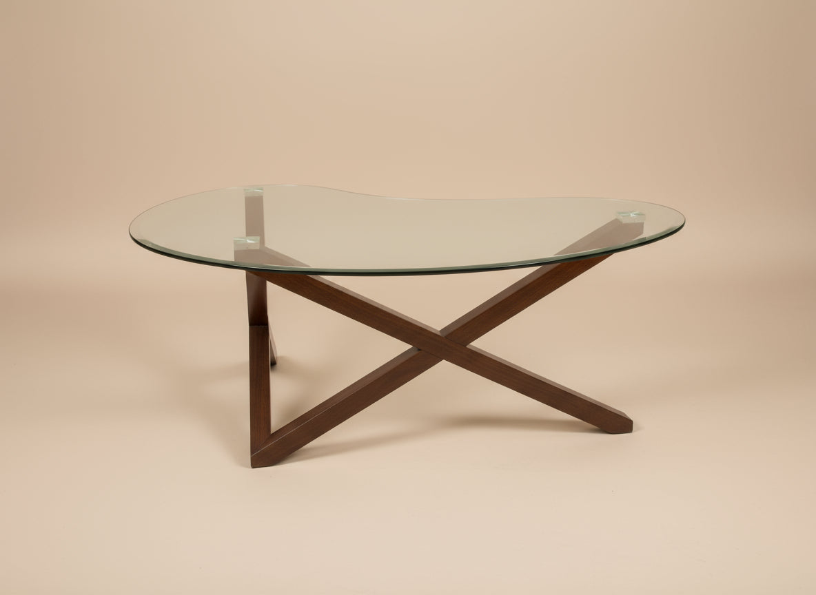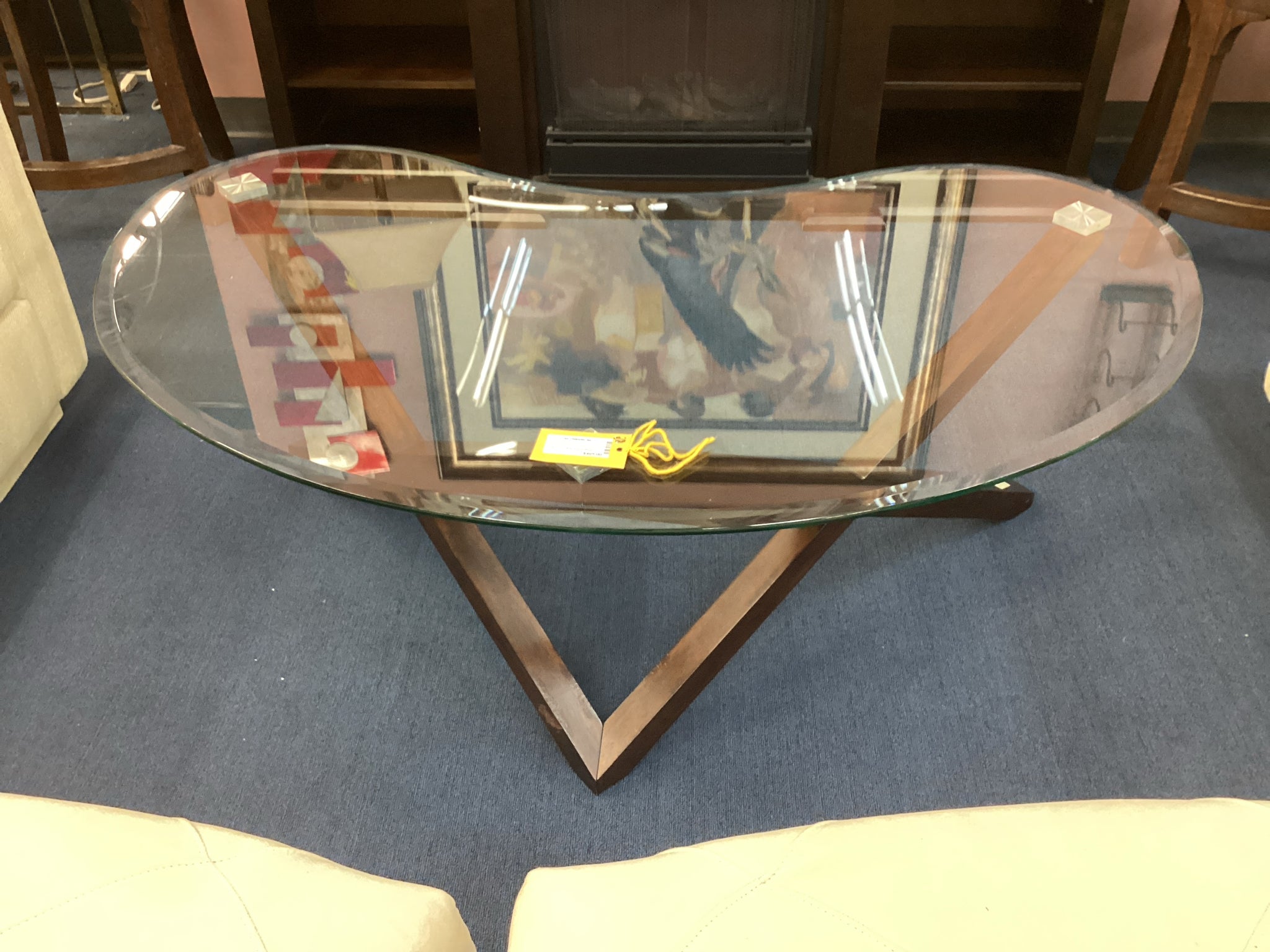 Glass Top Dark Wood Kidney Shaped Coffee Table