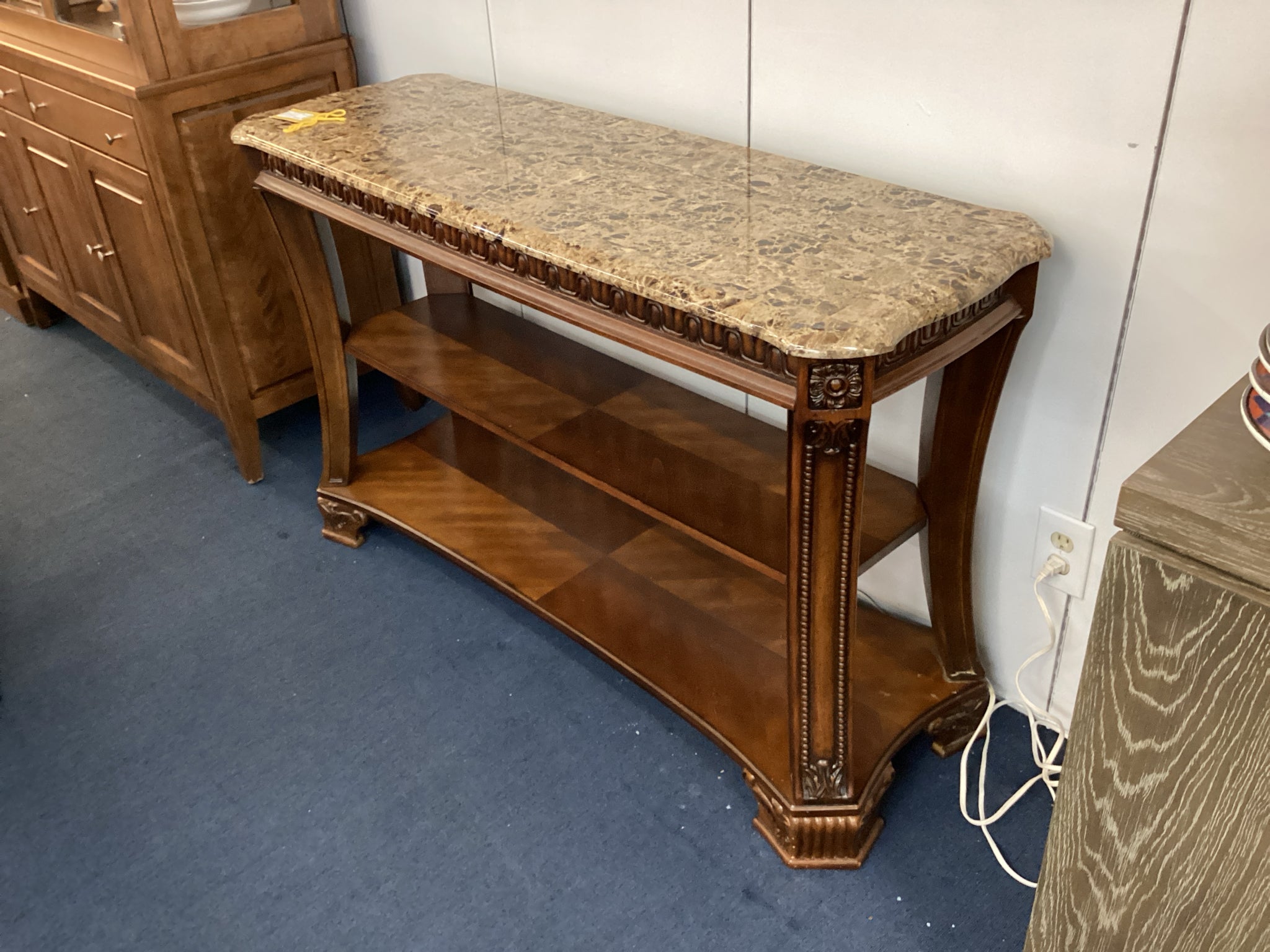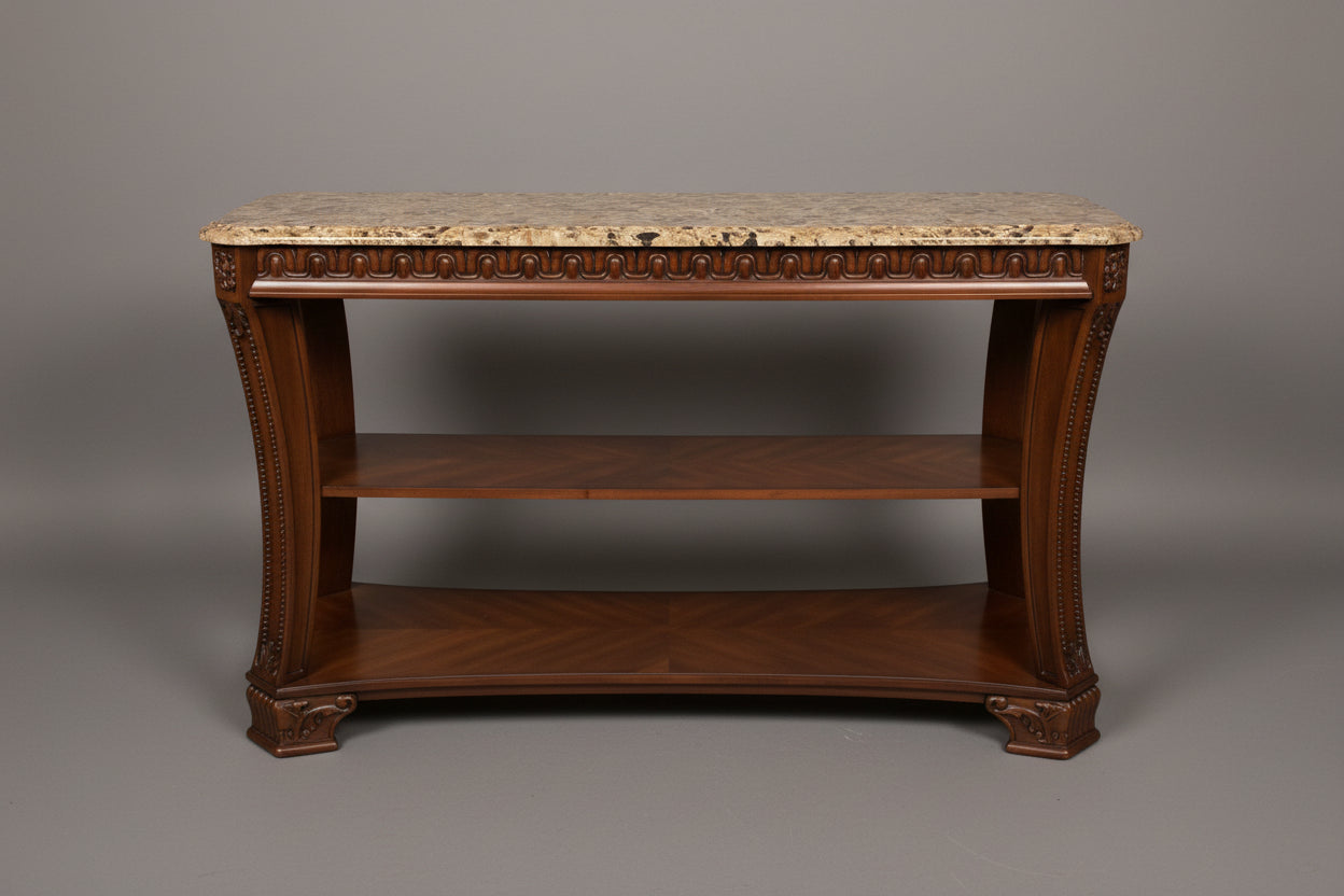 Medium Wood Faux Stone Top Console