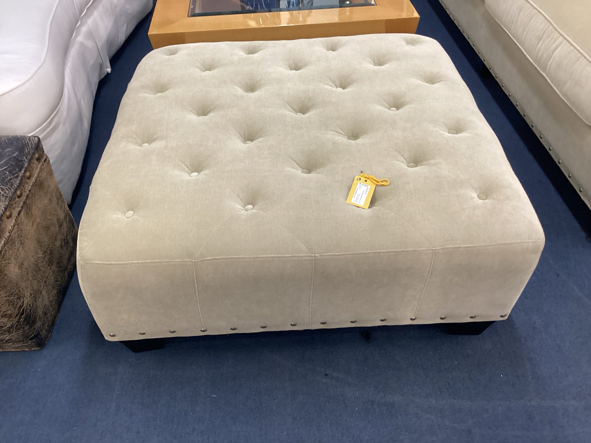 Tan Tufted Living Room Sofa With Nailheads And Ottoman