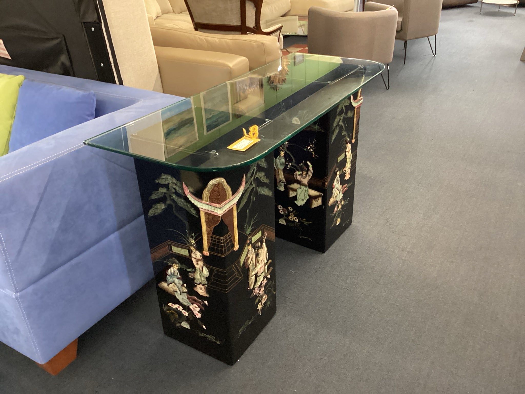 Black Asian Console With Glass Top