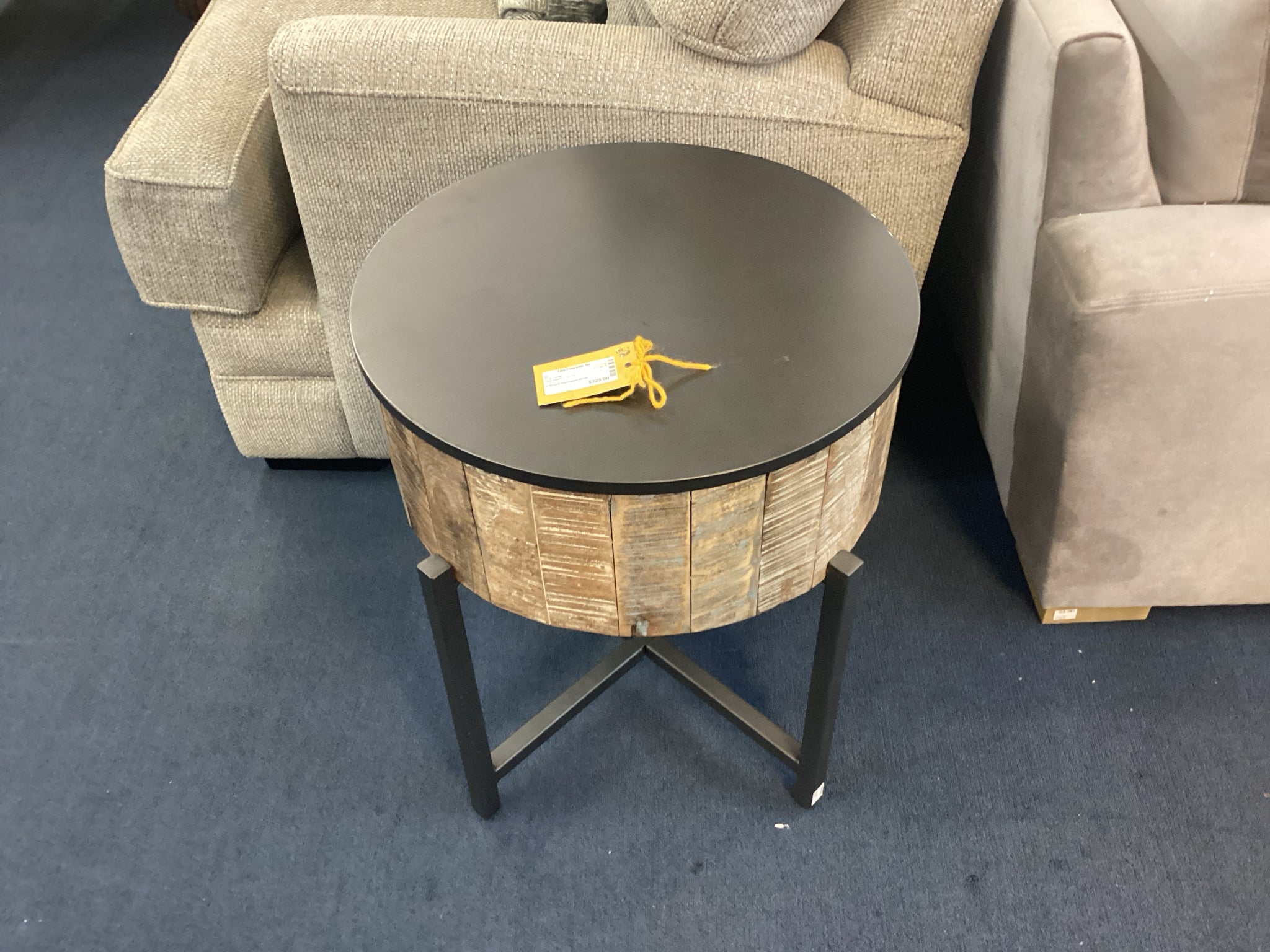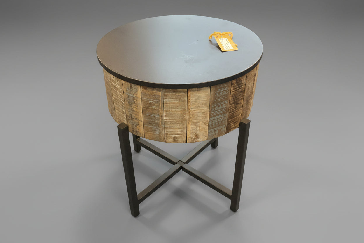 Round Distressed Wood End Table