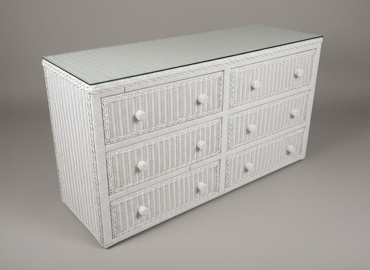 D-6 Drawer/Glass Top/Wicker L:53 W:18 H:29