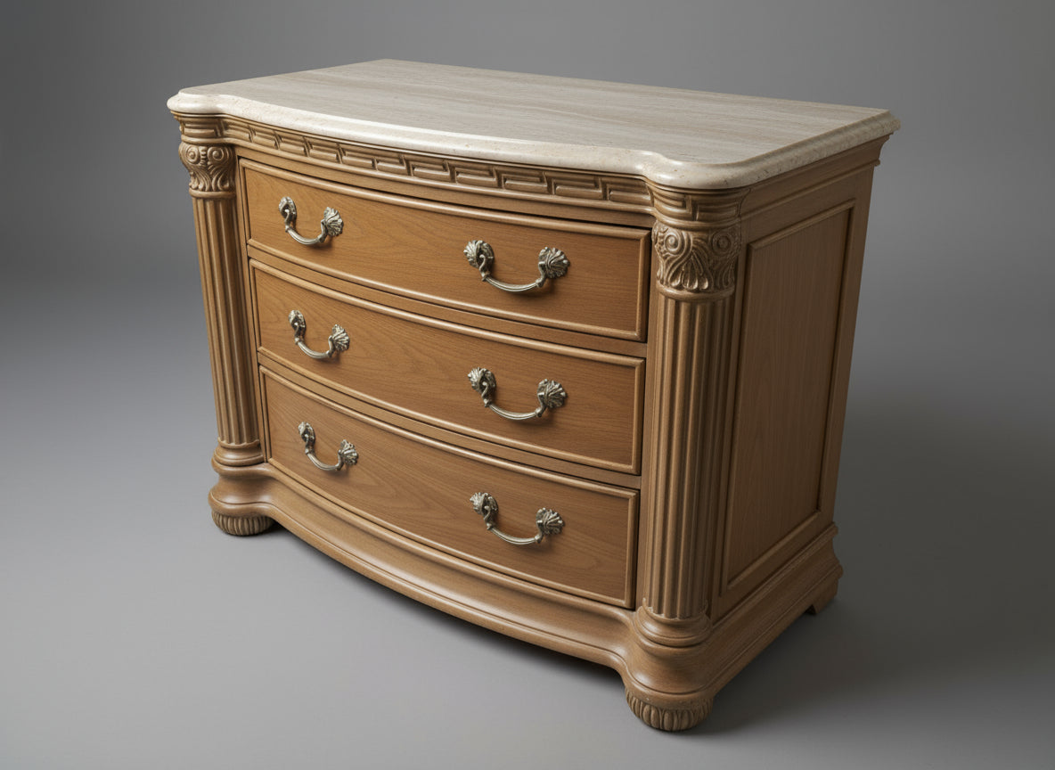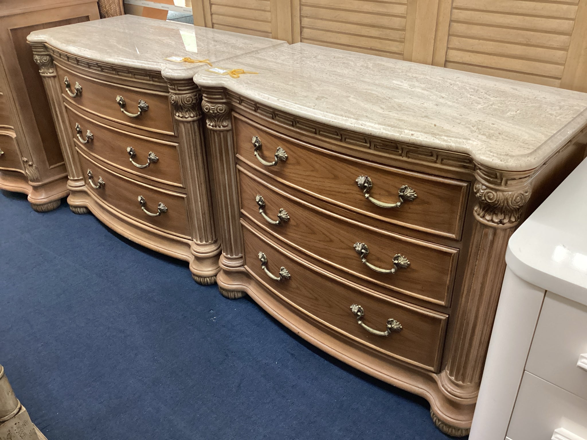 Bernhardt Medium Wood Nightstand With Three Drawers And Stone Top
