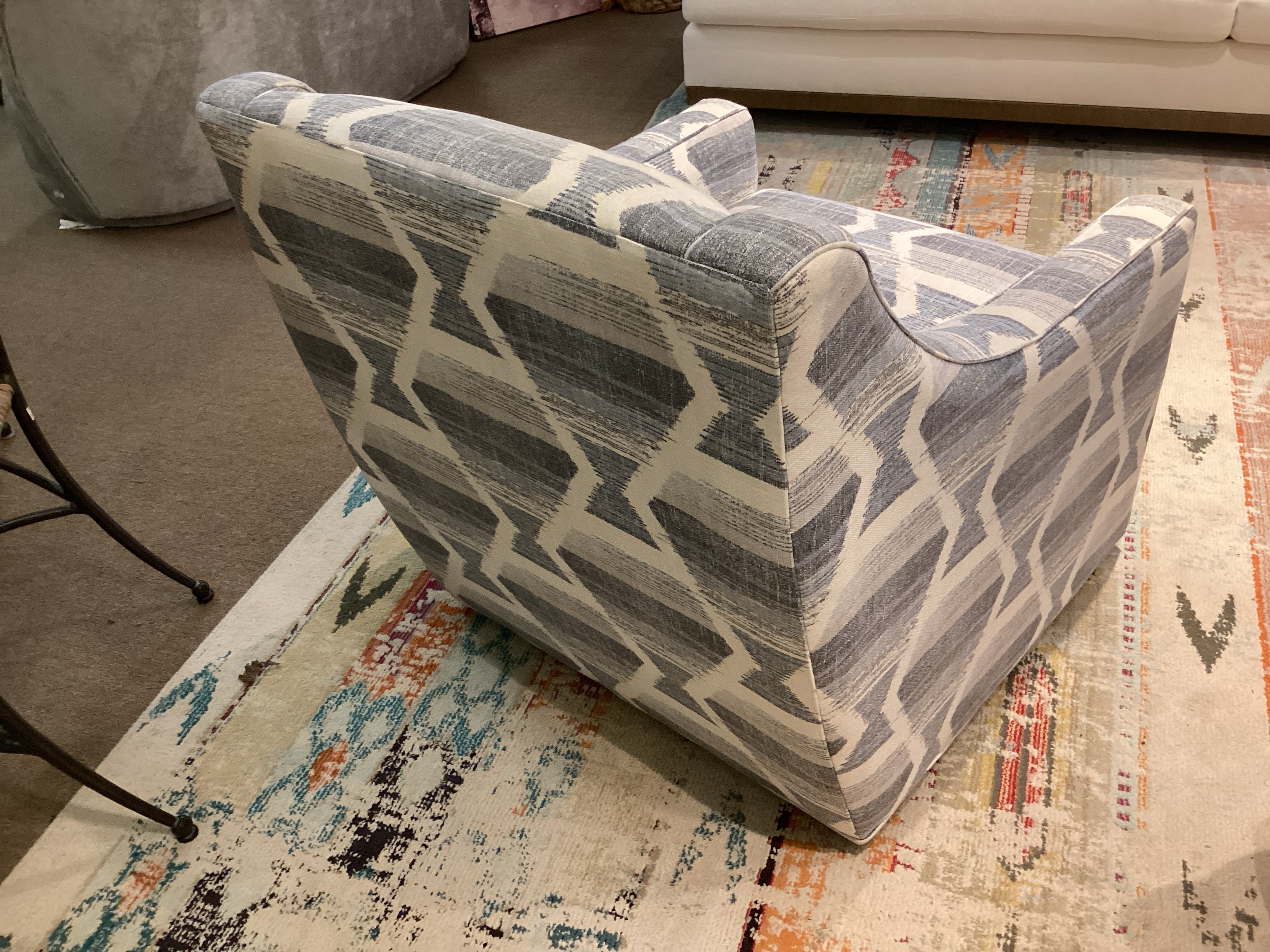 Blue and White Swivel Chair