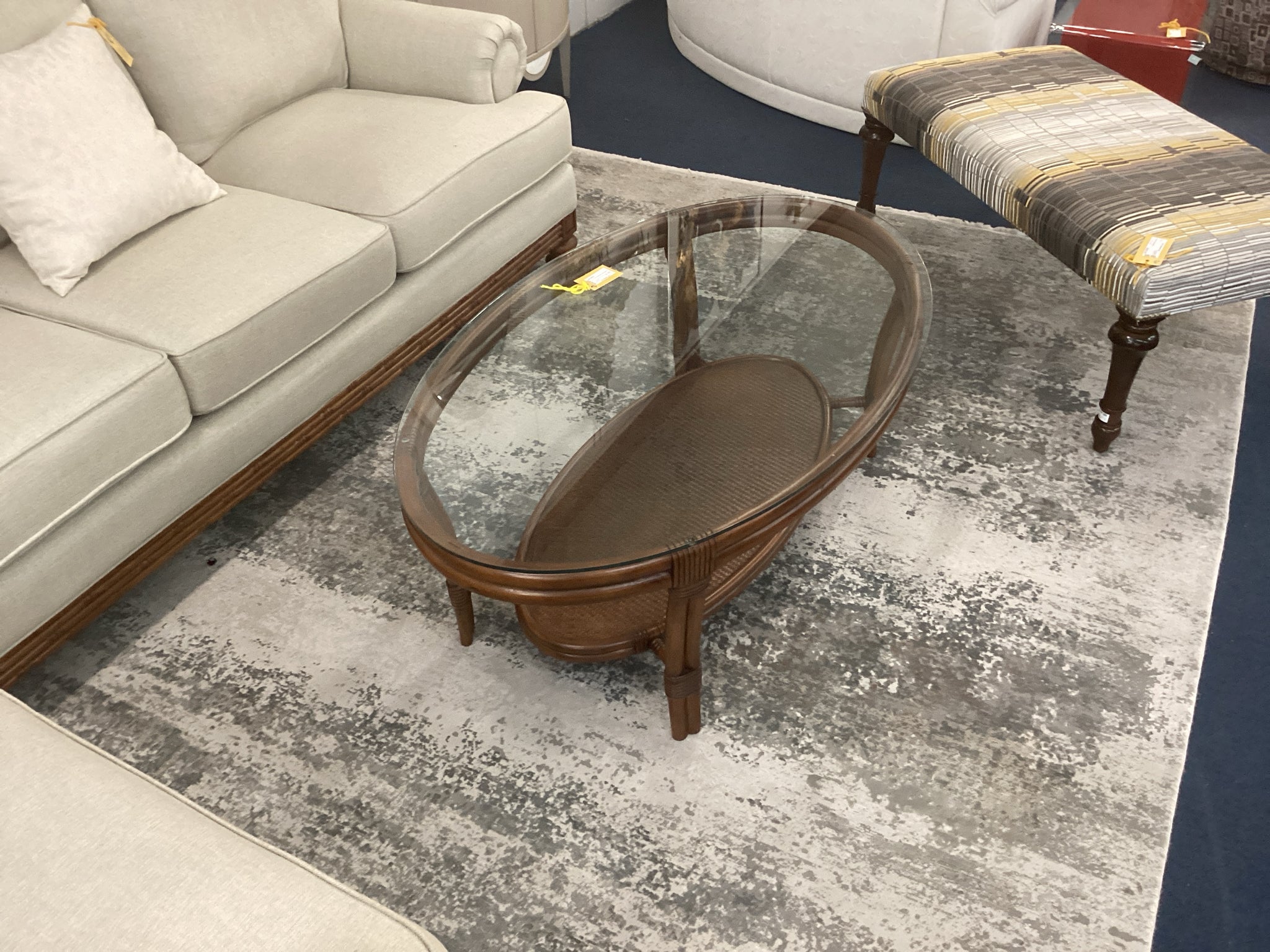 Medium Wood And Bamboo Coffee Table With Glass Top