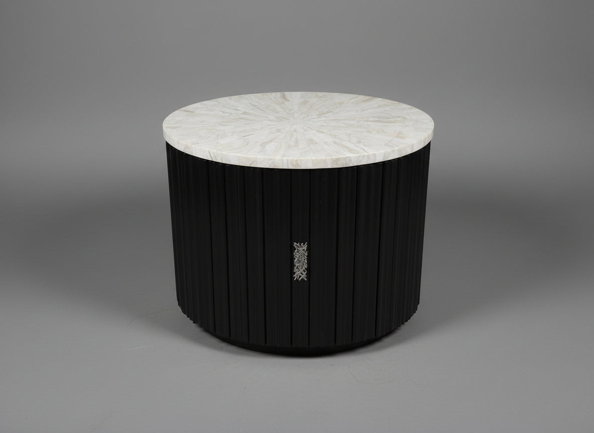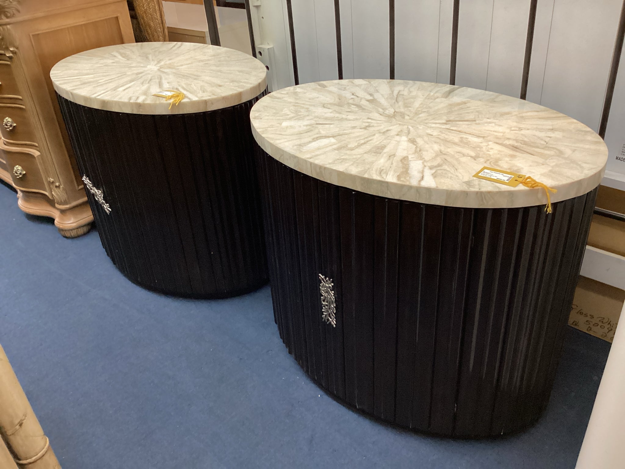 Pair Of Dark Wood Base Nightstands With Stone Tops