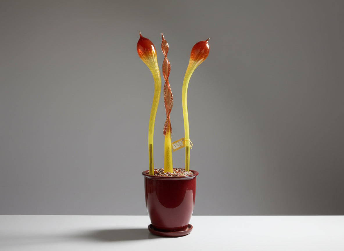 Yellow Orange Art Glass Flower Arrangement With Pot