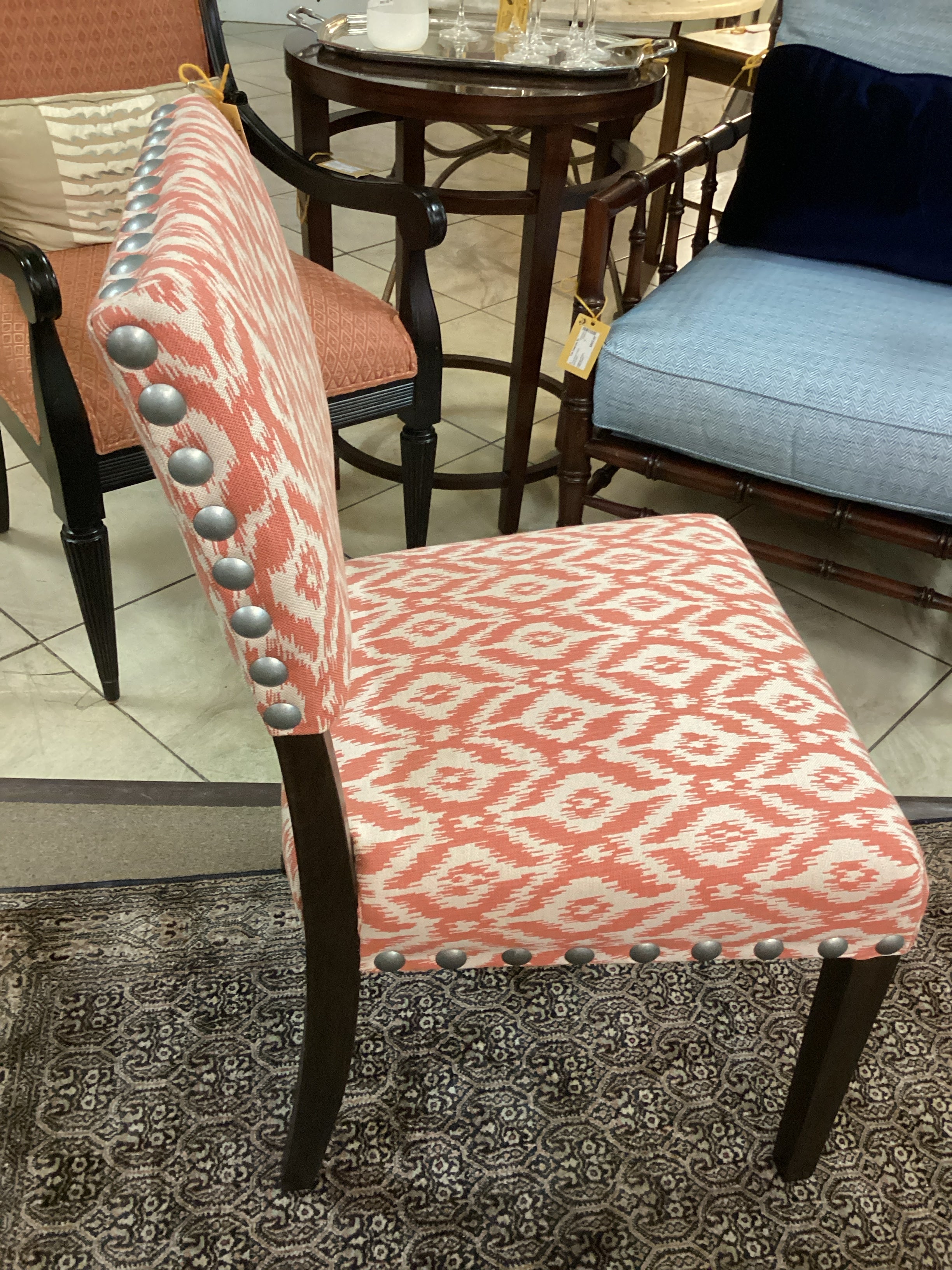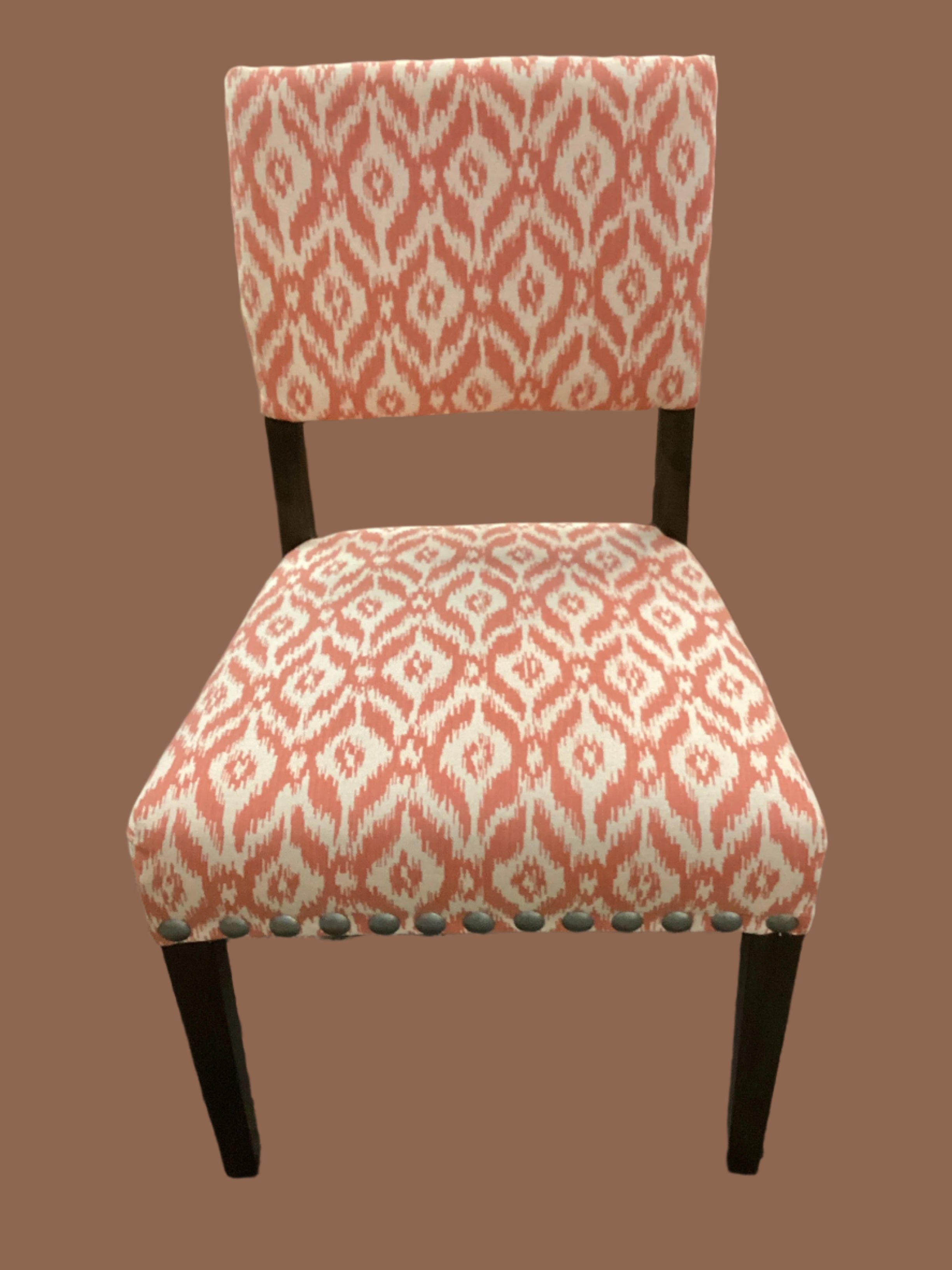 Set of Eight Salmon and Cream Dining Chairs