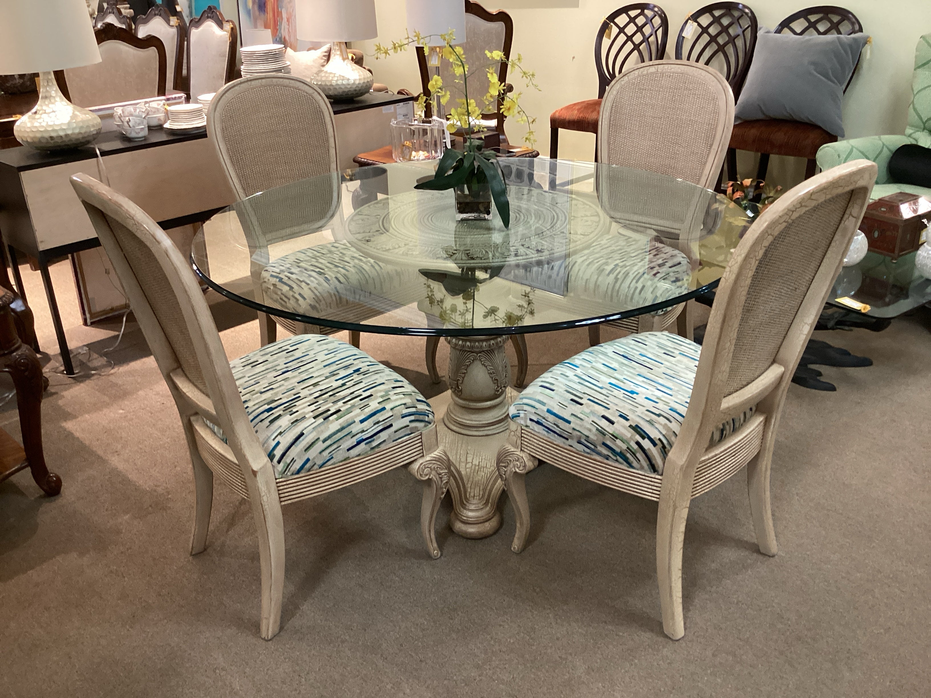 Set Round Dining Table and Four Chairs