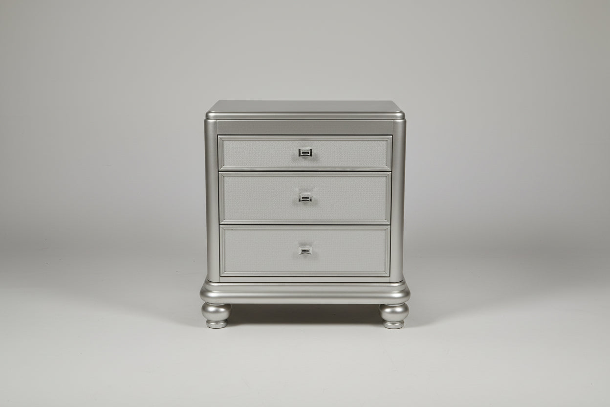 Grey Three Drawer Nightstand