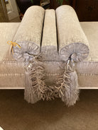 Grey Bench with Two Pillows And Tassels