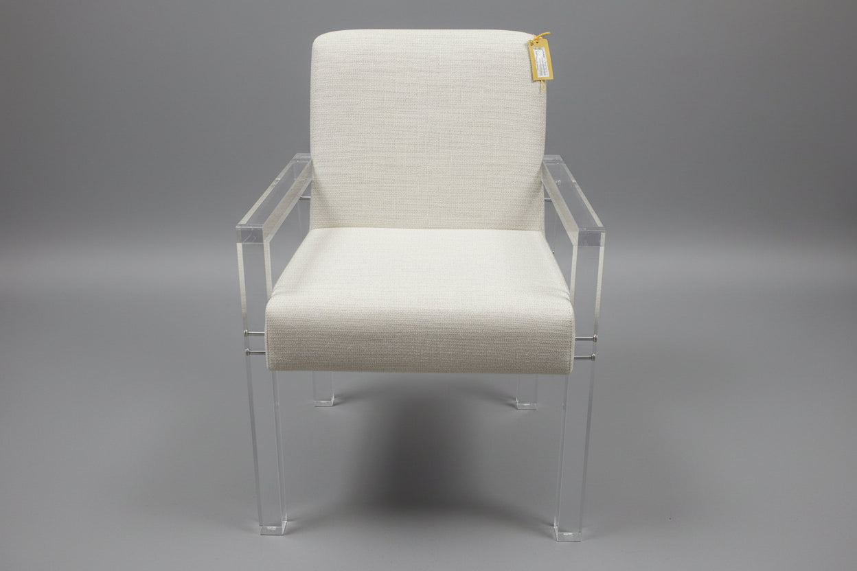 Pair Of Bernhardt White Fabric Living Room Chair With Lucite Arms