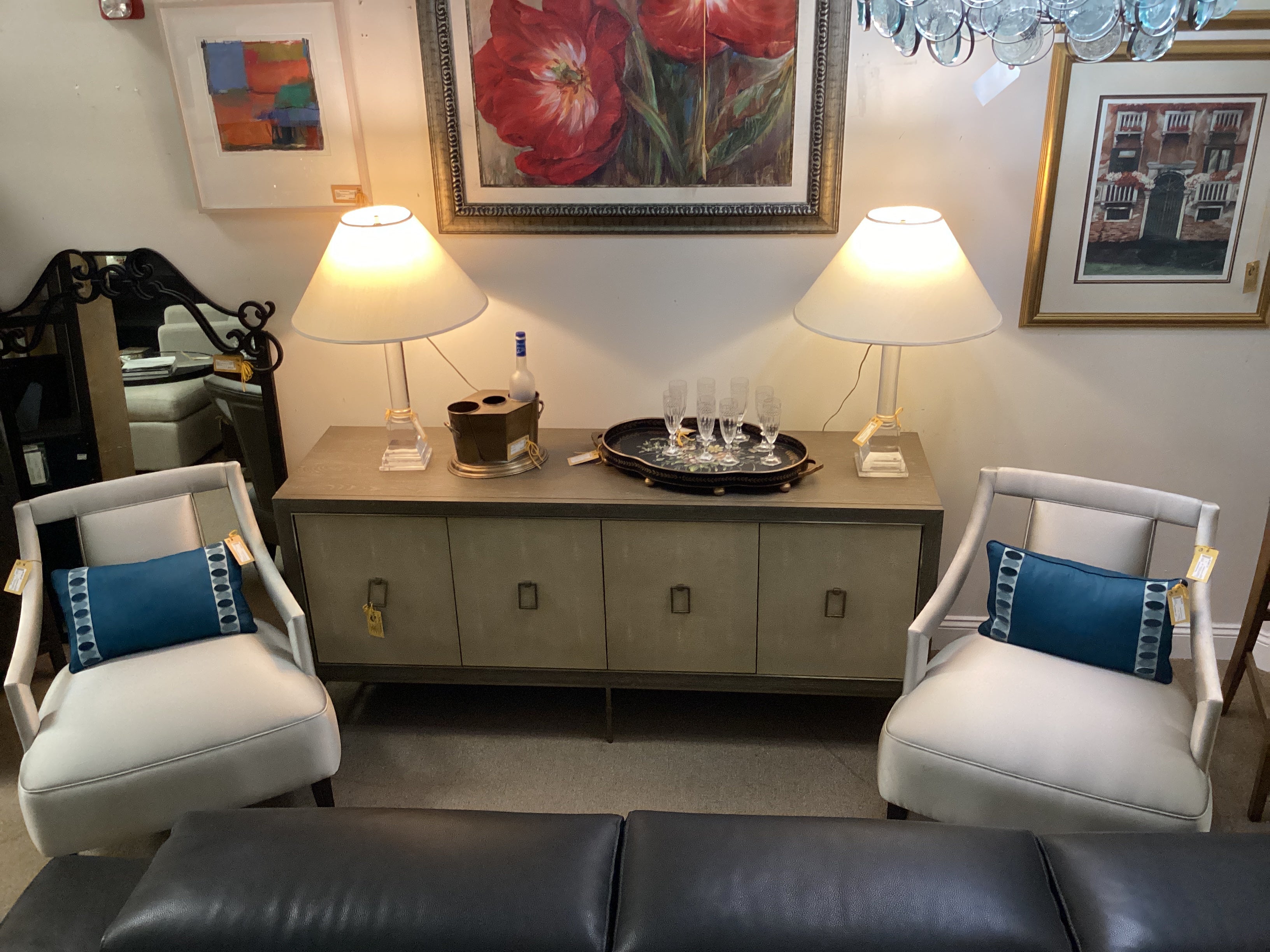Pair of Gray Silk Corset Living Room Chairs by Munna