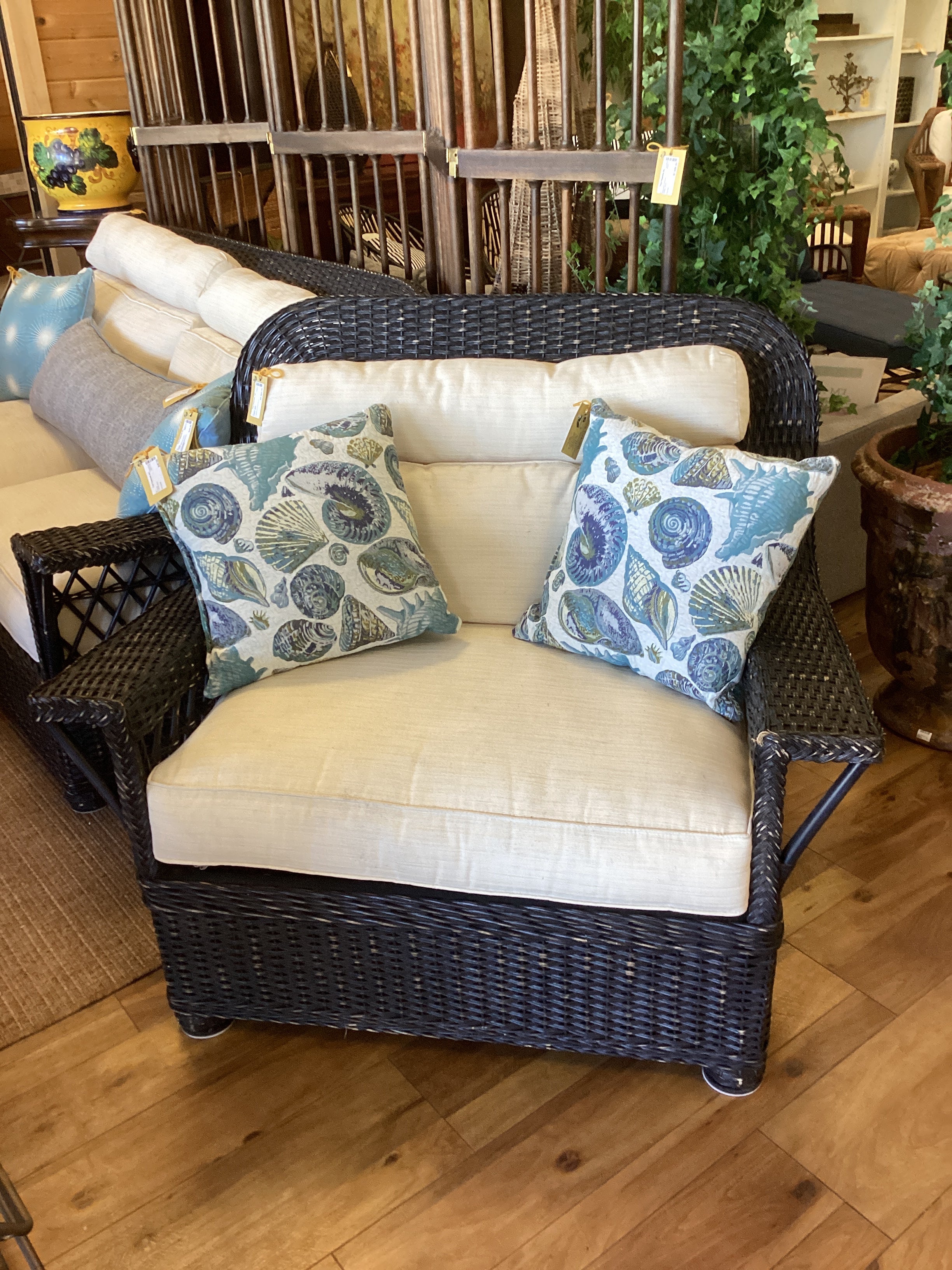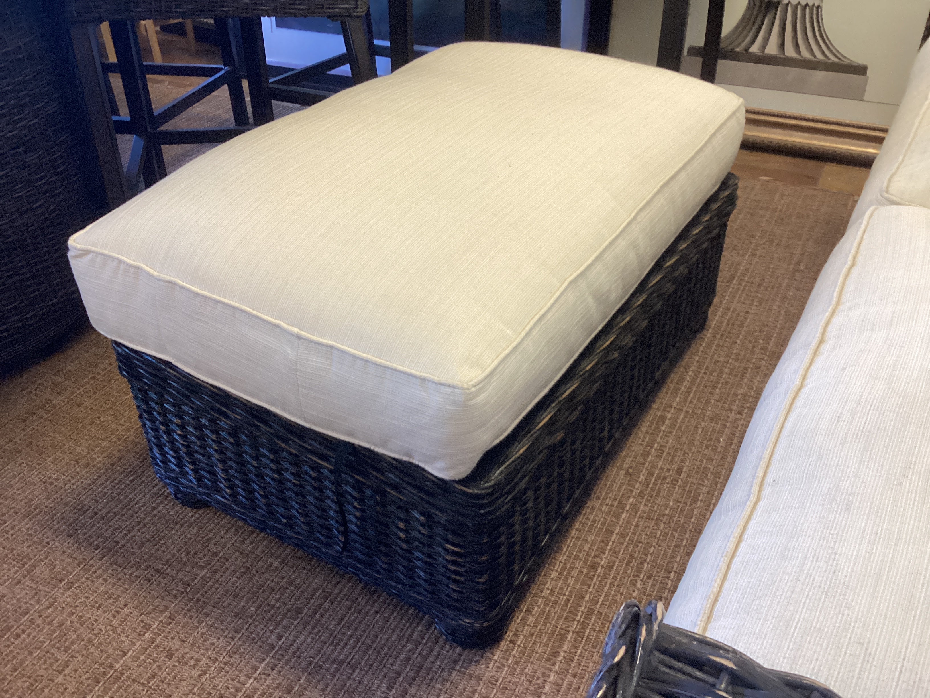 Set Black Wicker Outdoor Sofa and Chair with Ottoman