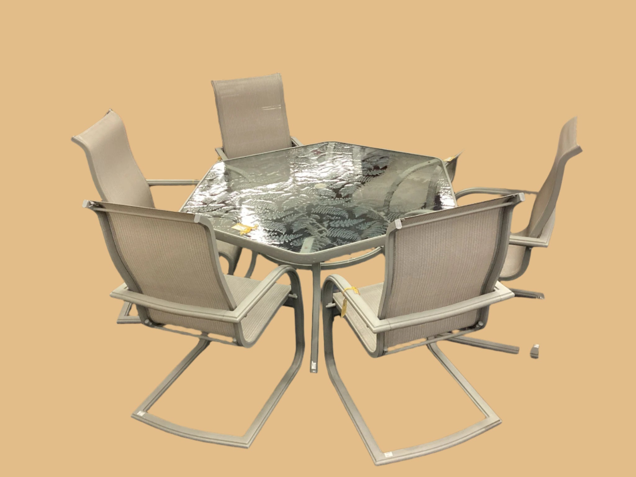 Set Of Glass Top Octagon Outdoor Table With Six Chairs