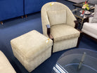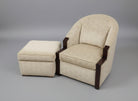 Tan Patterned Living Room Chair With Ottoman