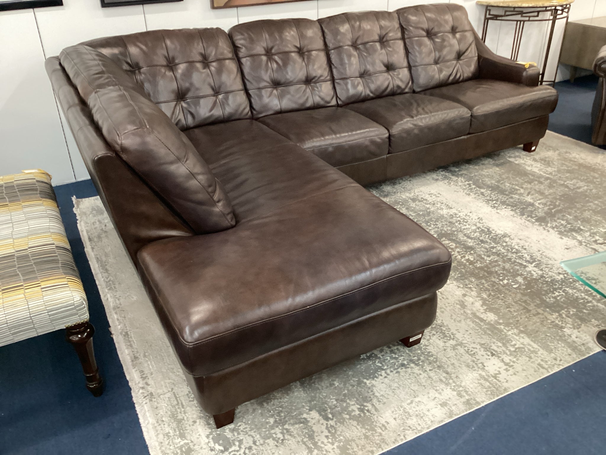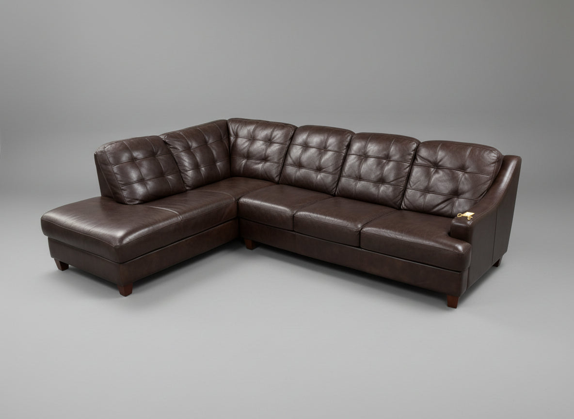Two Piece Brown Leather Living Room Sectional