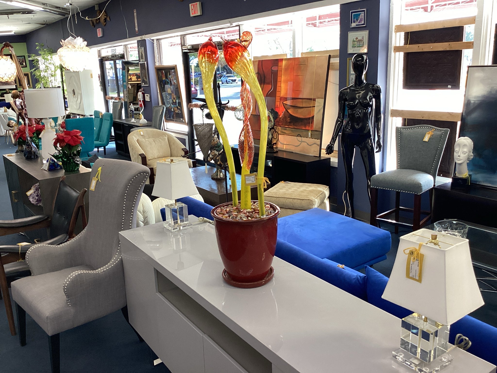 Yellow Orange Art Glass Flower Arrangement With Pot